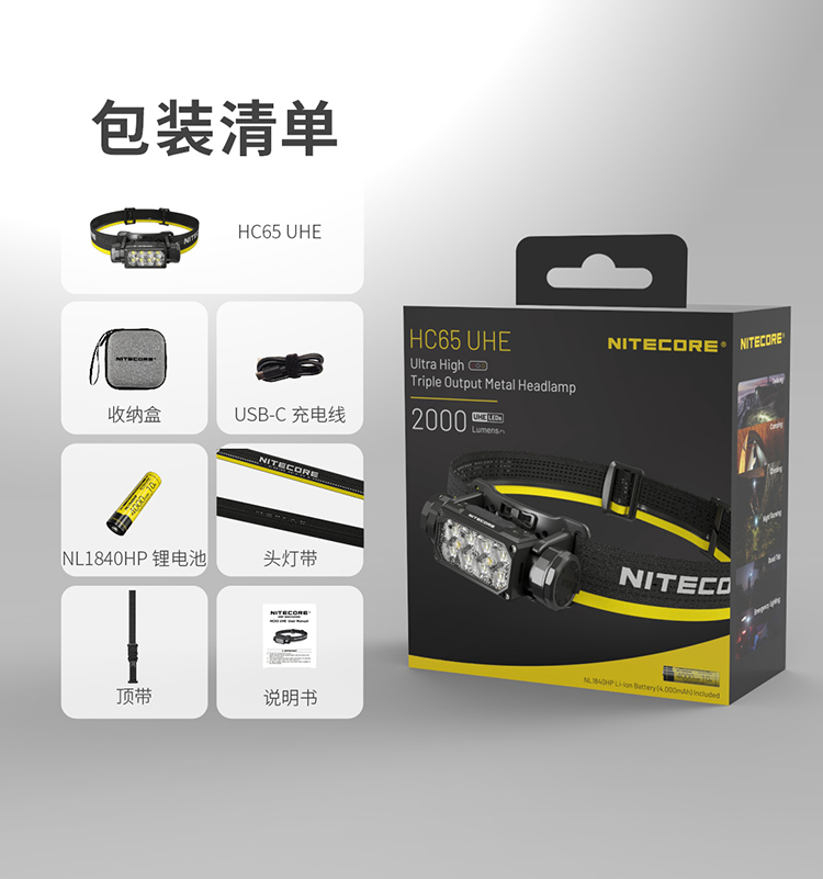 NITECOREナイトコールHU2000工业ヘッドライト分体式軽量プロヘッドライト超明るい照明オーバーホール