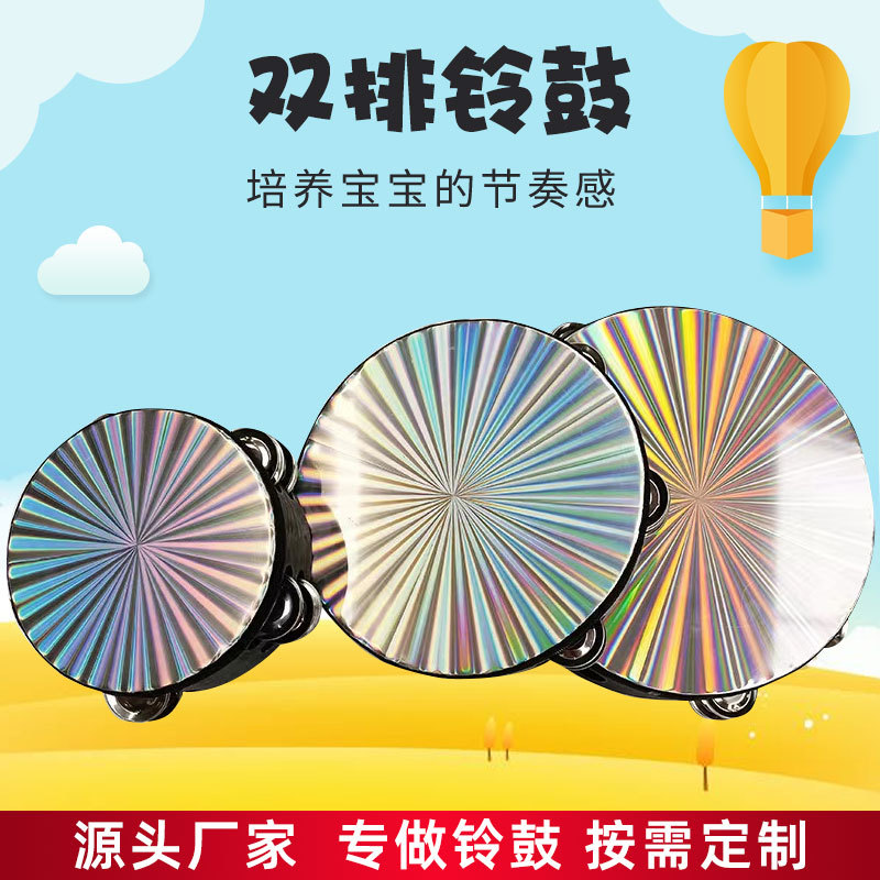 オルフ二列レーザードラム6インチ8インチ10インチタンバリン子供楽器二列カラーレーザー手揺れタンバリン