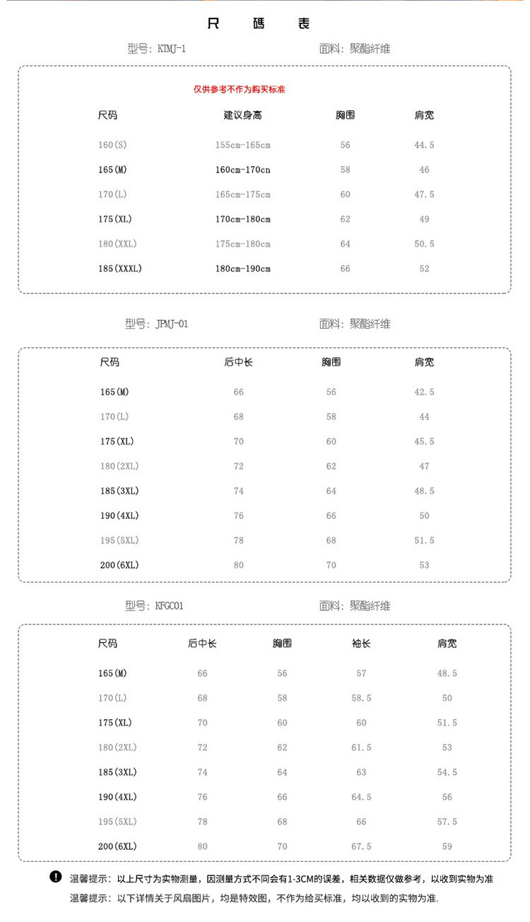 160/S,165/M,170/L,175/XL,180/XXL,185/XXXL,190/XXXXL,195/XXXXXL
