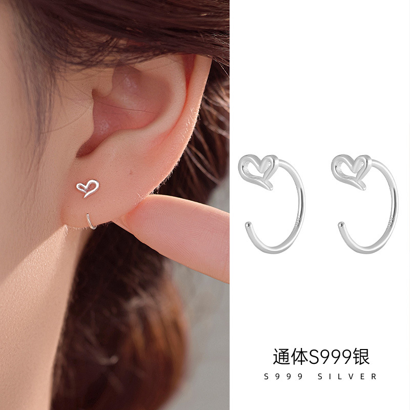 Xishi Silversmith 999 スターリングシルバーの女性用ラブイヤリング、シンプルな気質、軽い贅沢、ハイエンドのフォレストスタイルのレトロなイヤリング、ドロップシッピング