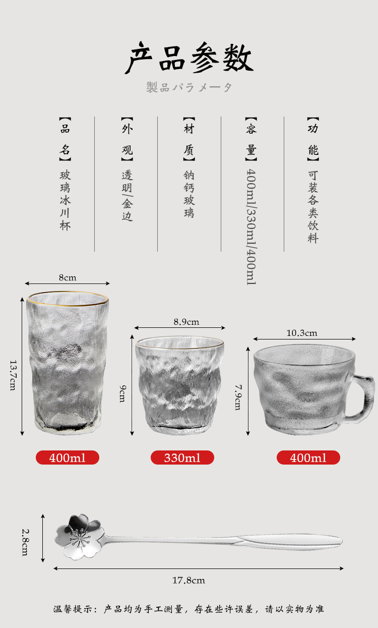 ガラス製氷河カップ、厳選された百貨店の茶水・飲料用カップ、小さなギフト、インスタ映え、家庭用