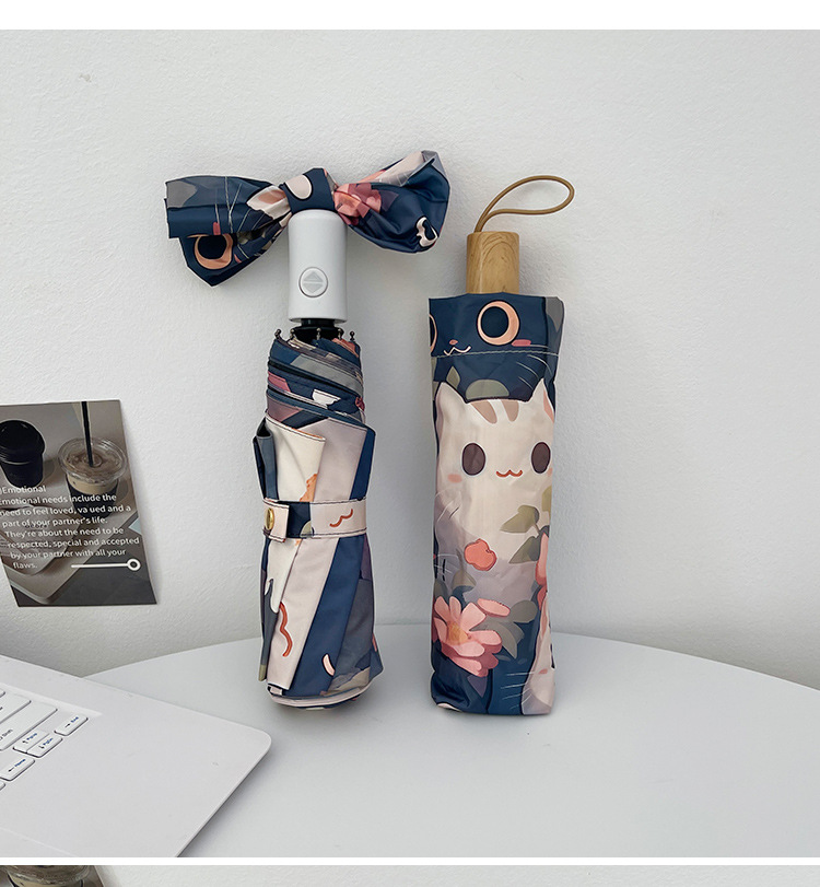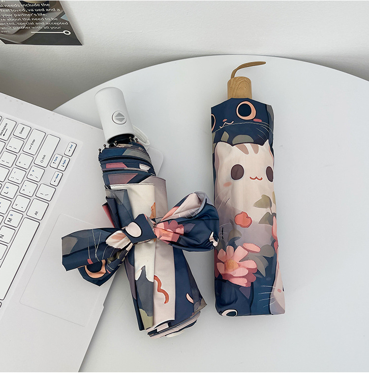 夢幻かわいい猫自動折り畳み傘晴雨両用日焼け止め紫外線防止パラソル女性携帯日傘