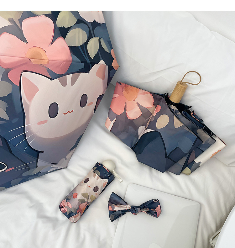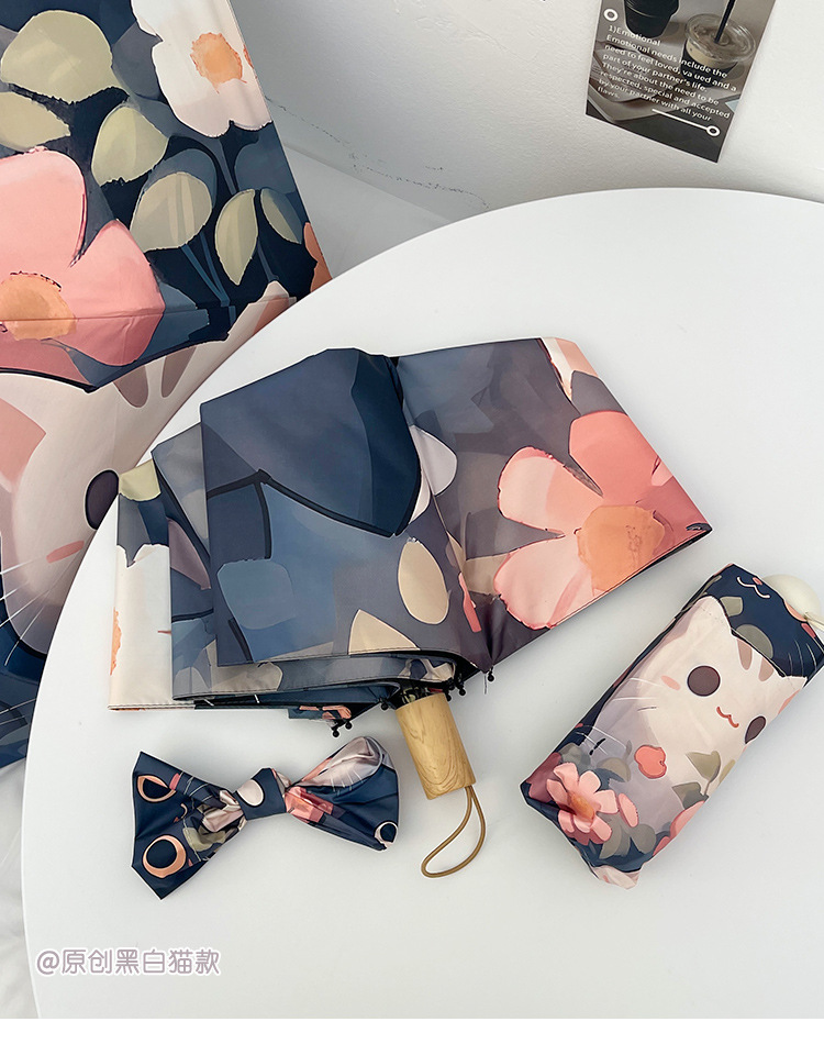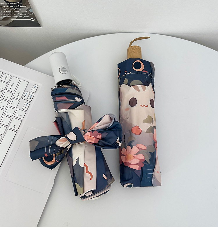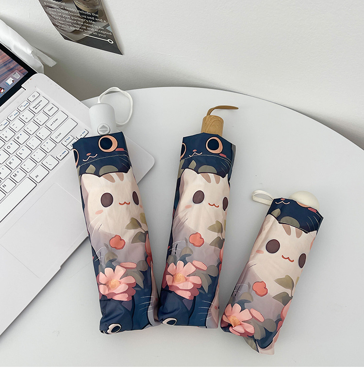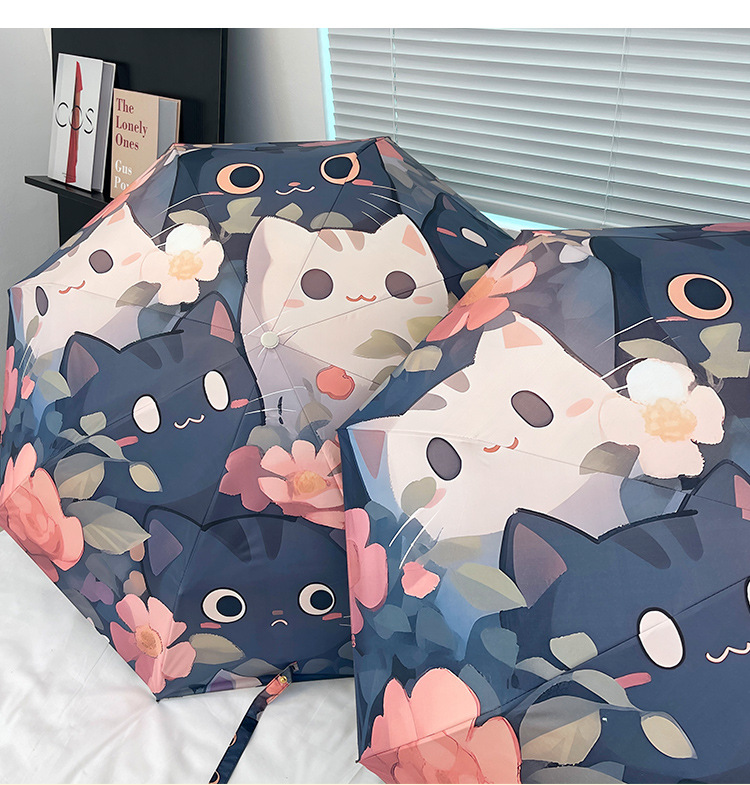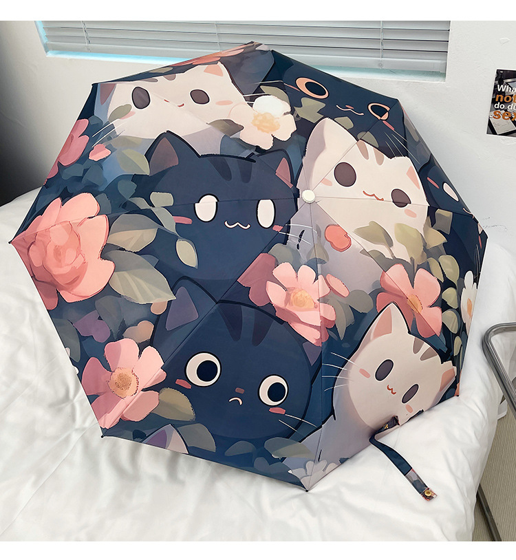 現物卸売りins高颜値漫画黒胶晴雨両用傘満版デジタル印刷三つ折り傘日焼け止め日よけ