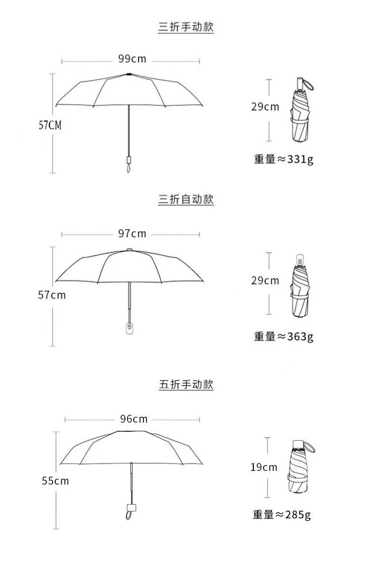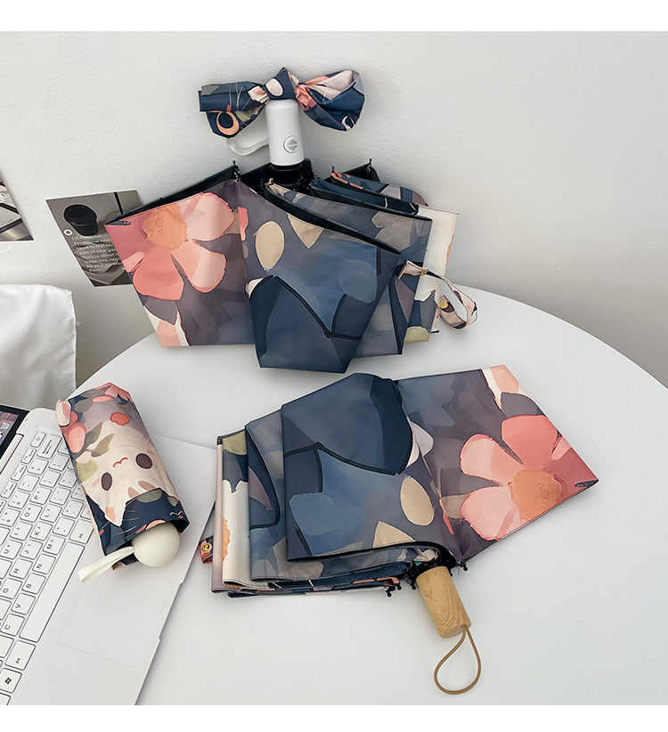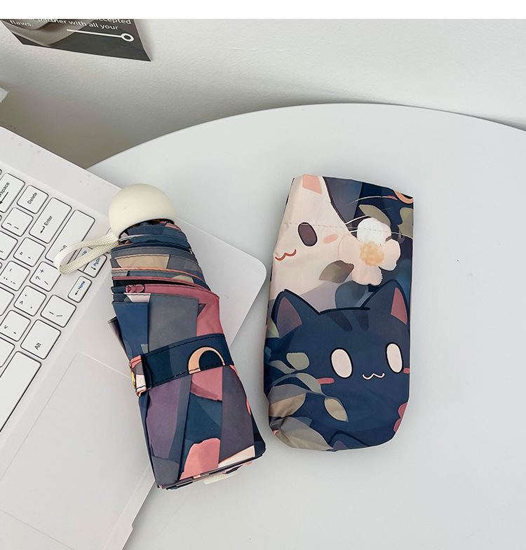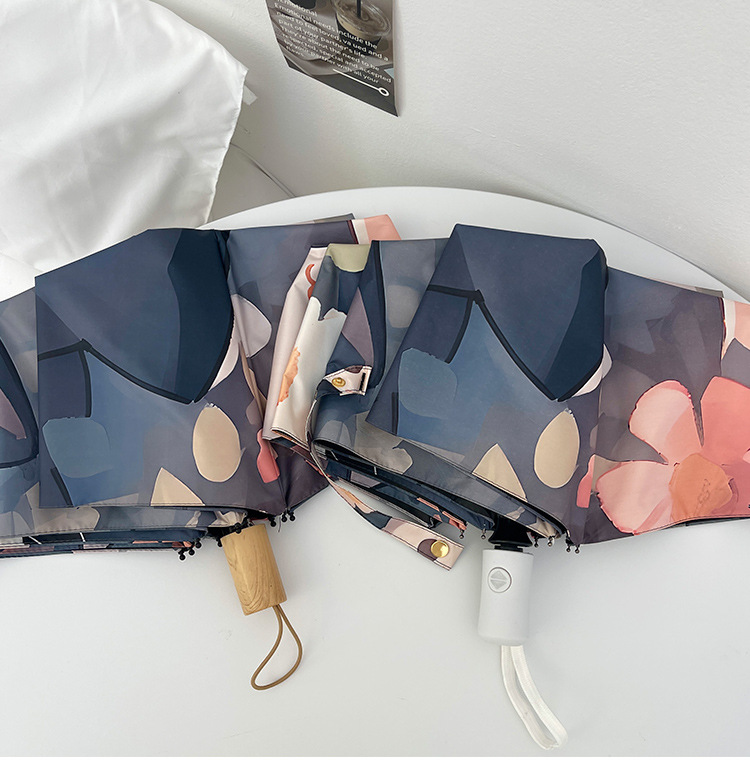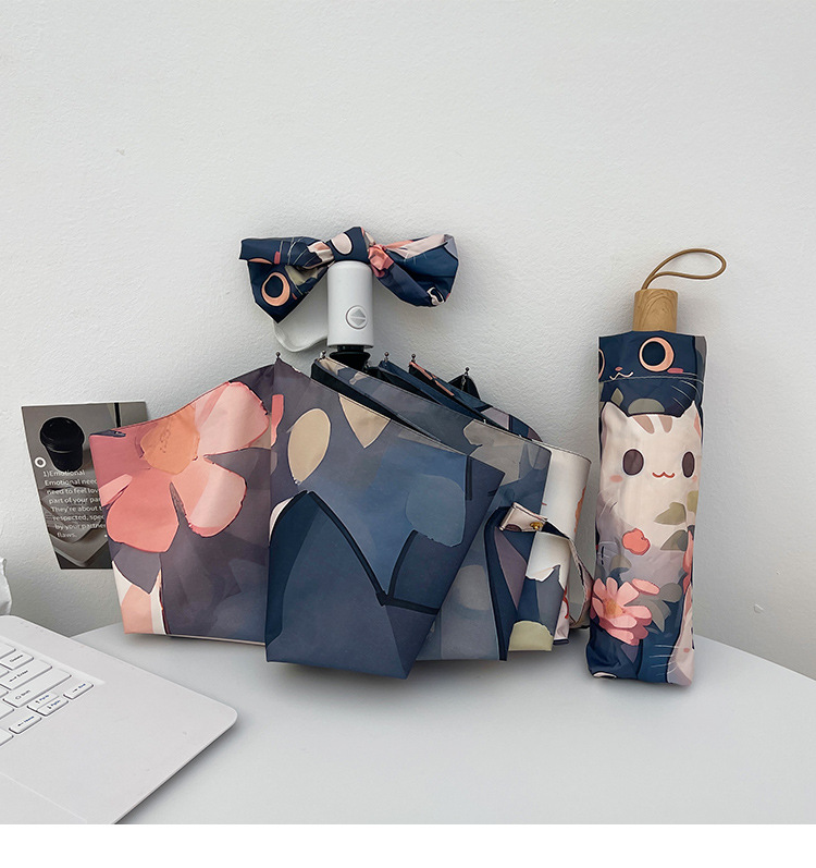 現物卸売りins高颜値漫画黒胶晴雨両用傘満版デジタル印刷三つ折り傘日焼け止め日よけ