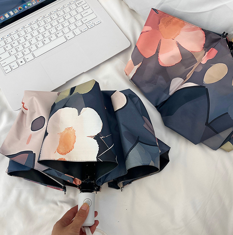 Ins少女心黒ゴム折り畳み傘日焼け止め紫外線対策晴雨両用自動日傘携帯日傘