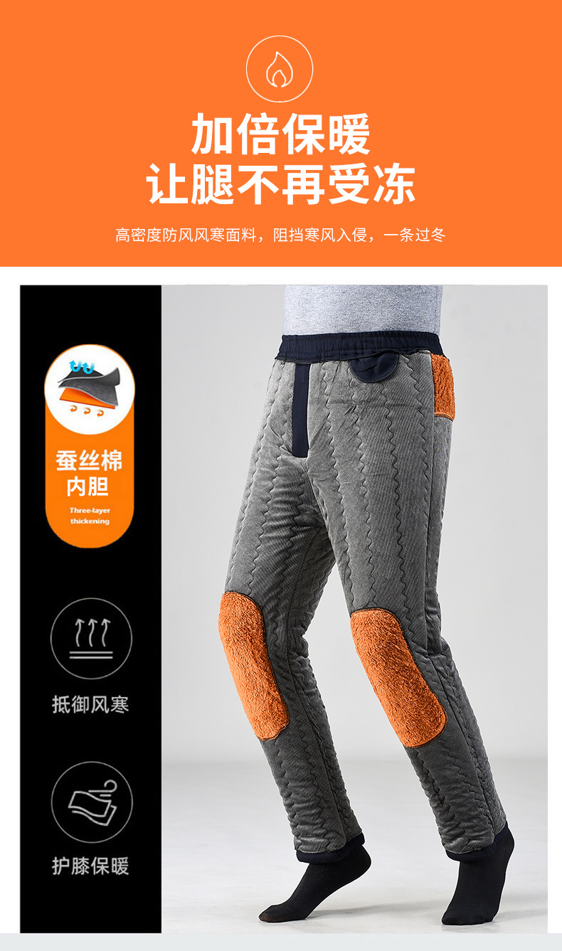 男性用冬用綿ズボン、裏起毛・厚手、ゆったり、中高年向け、東北地方の暖かいシルク綿素材、お父さん向けズボン、通勤用