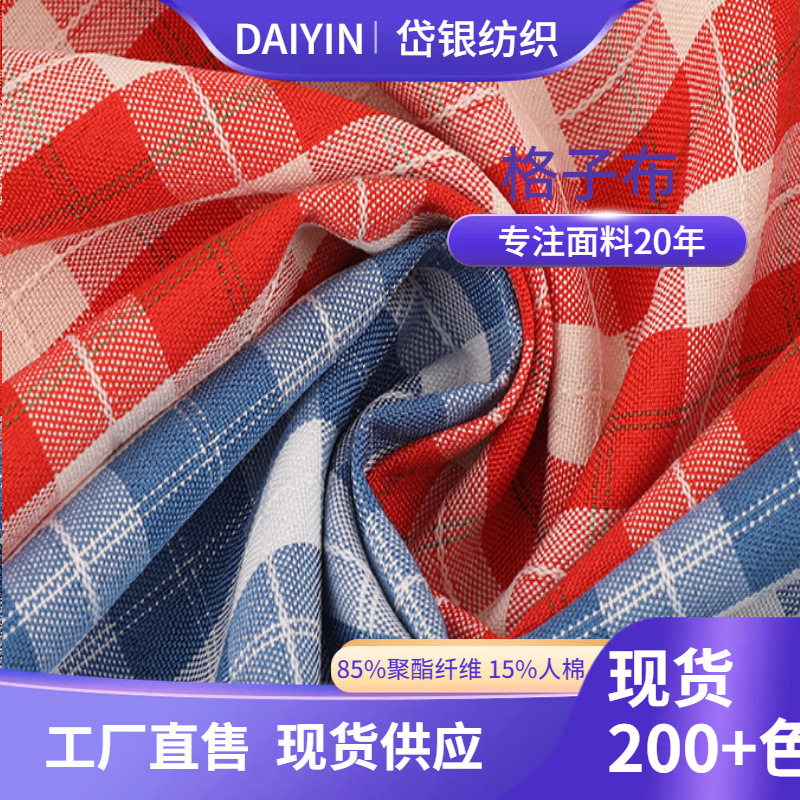 現物ポリエステルtr色織超朝陽格子生地春夏ファッションコートシャツjkスカートワンピース生地