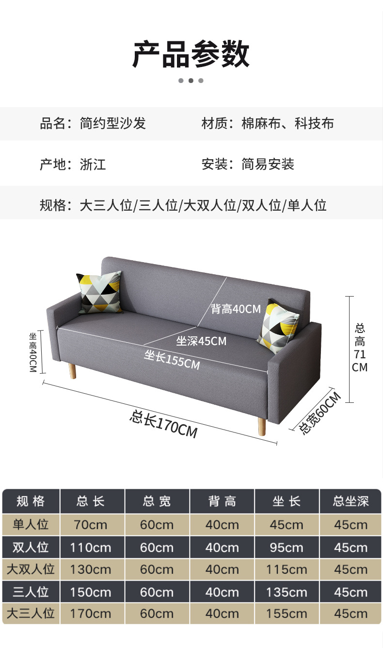 北欧の小戸型客間ソファー賃貸マンション布芸ソファー寝室科学技術布ソファー直列小ソファー