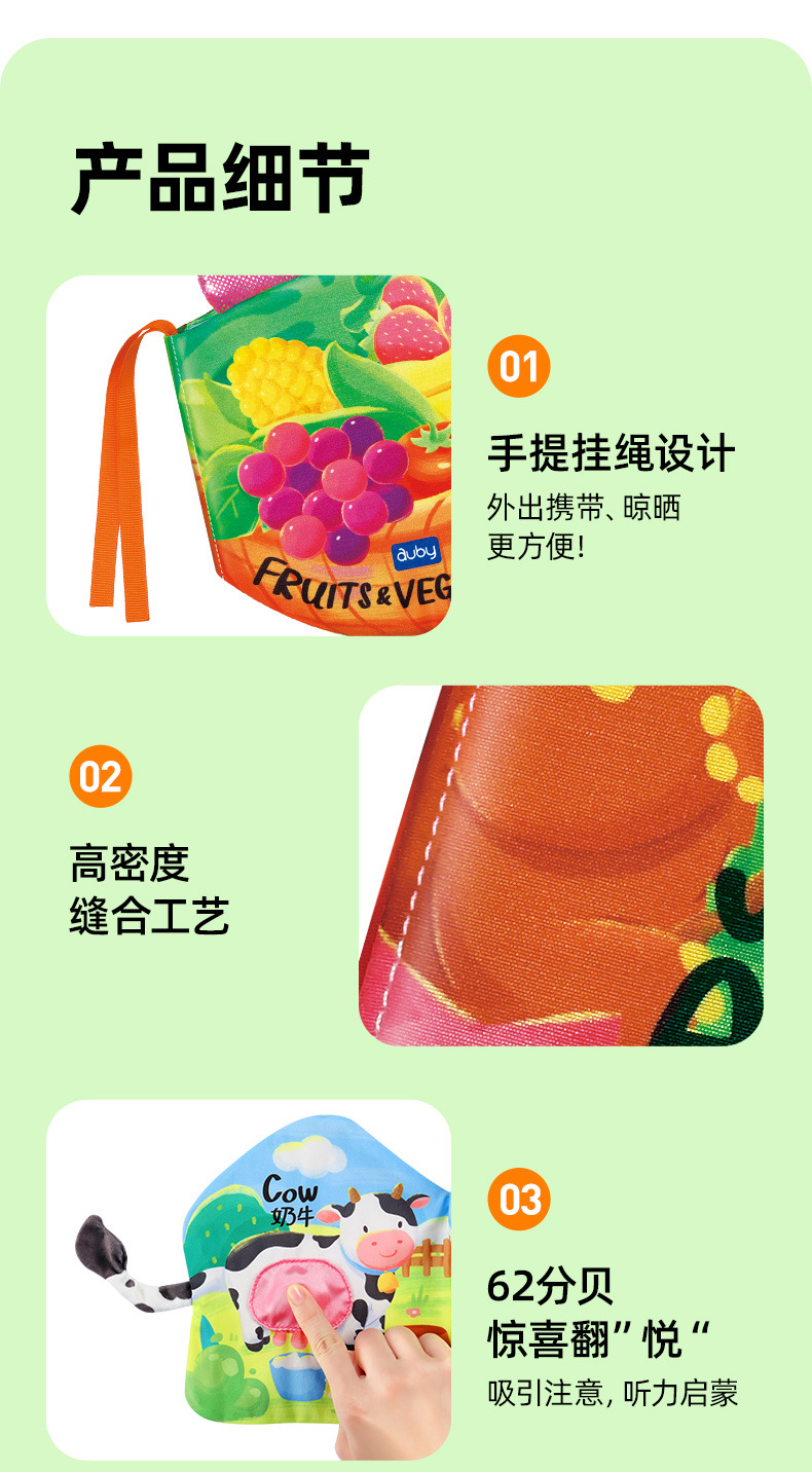 Aobei ブックブック、ベビーチューイングブック、ベビーペースト、豪華な手で破れるブック、早期教育啓発おもちゃ、ファームブック