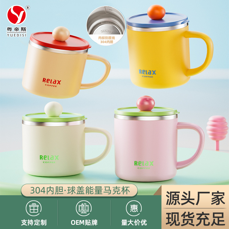 厂家直销 多巴胺球盖马克杯304不锈钢咖啡杯办公室便携高颜值水杯