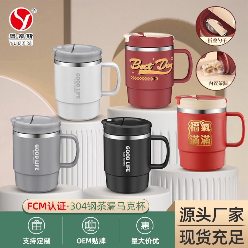 メーカー直供創意事務用水杯高颜値帯茶漏マグカップ304ステンレスコーヒーカップ代発