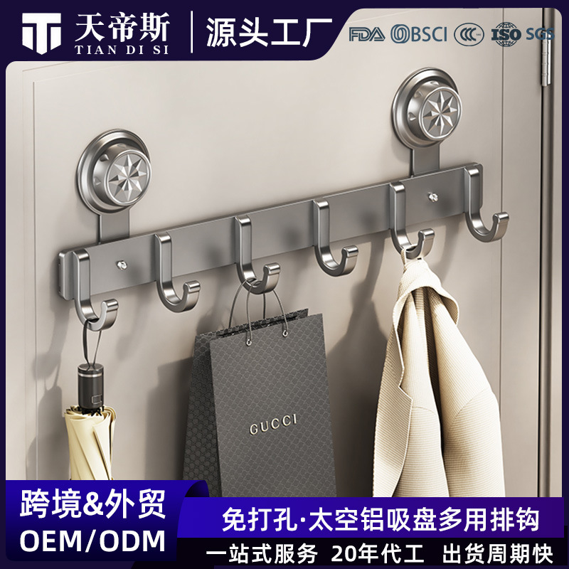跨境免打孔浴室墙上一排钩子入户门后衣帽包包收纳挂衣钩吸盘挂钩