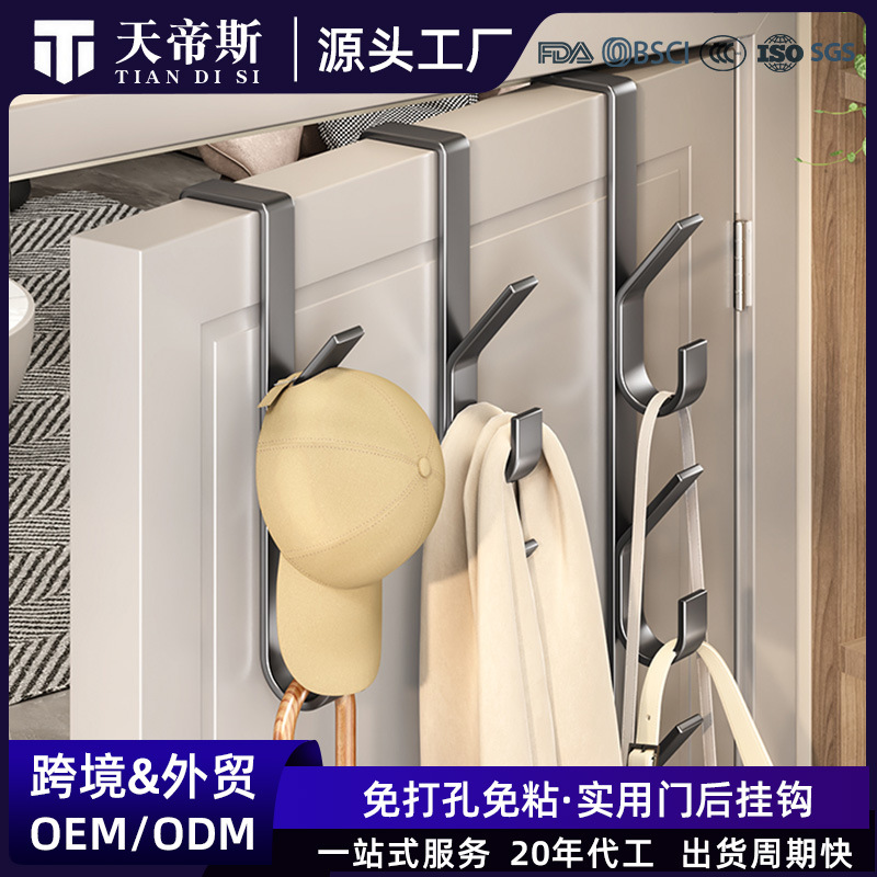 跨境门后免打孔无痕竖条排钩卧室门上挂架挂衣服包包饰品竖条挂钩