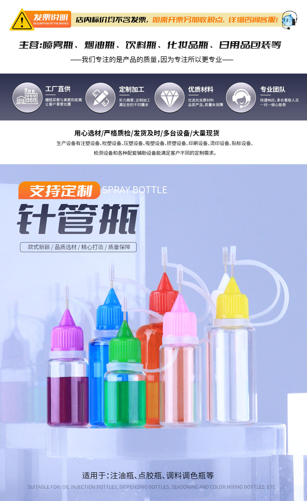 針管瓶pet針穴尖口瓶押出瓶プラスチック15ml刺青色材瓶ペットボトル顔料分注瓶