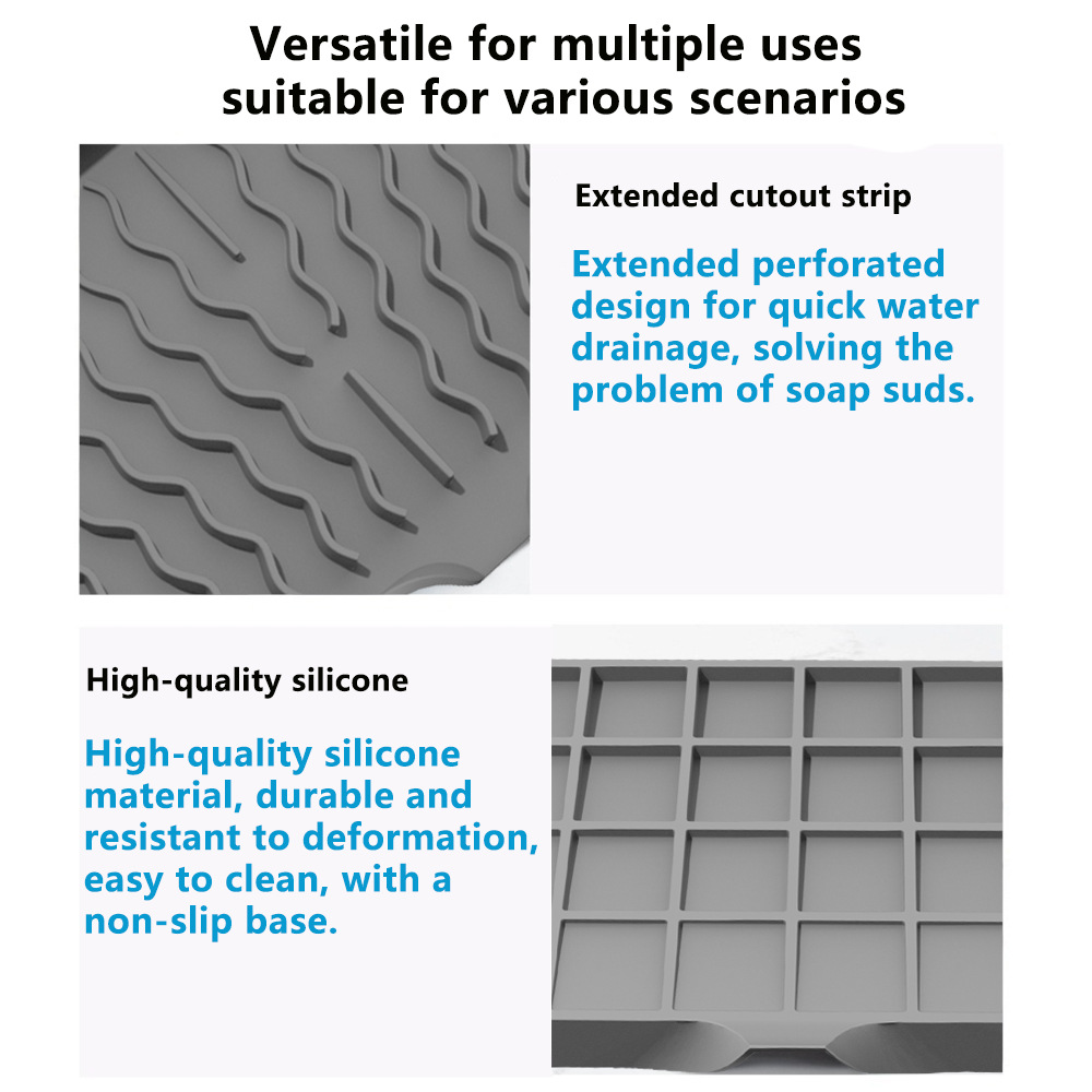 跨境商机品硅胶餐具沥水垫隔热防滑水槽垫斜坡导流碗碟干燥滤水垫
