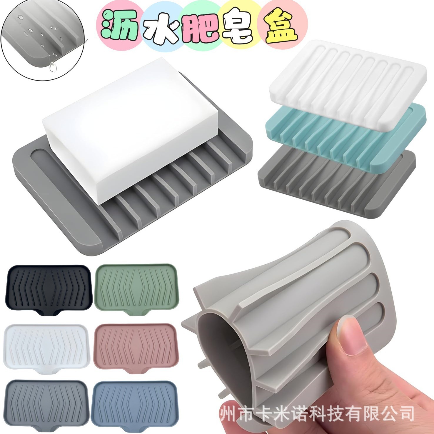 クロスボーダーのシリカゲルの石鹸棚は水を切って石鹸の箱の新型のアイデアの四角形を切って穴を開けないでください。