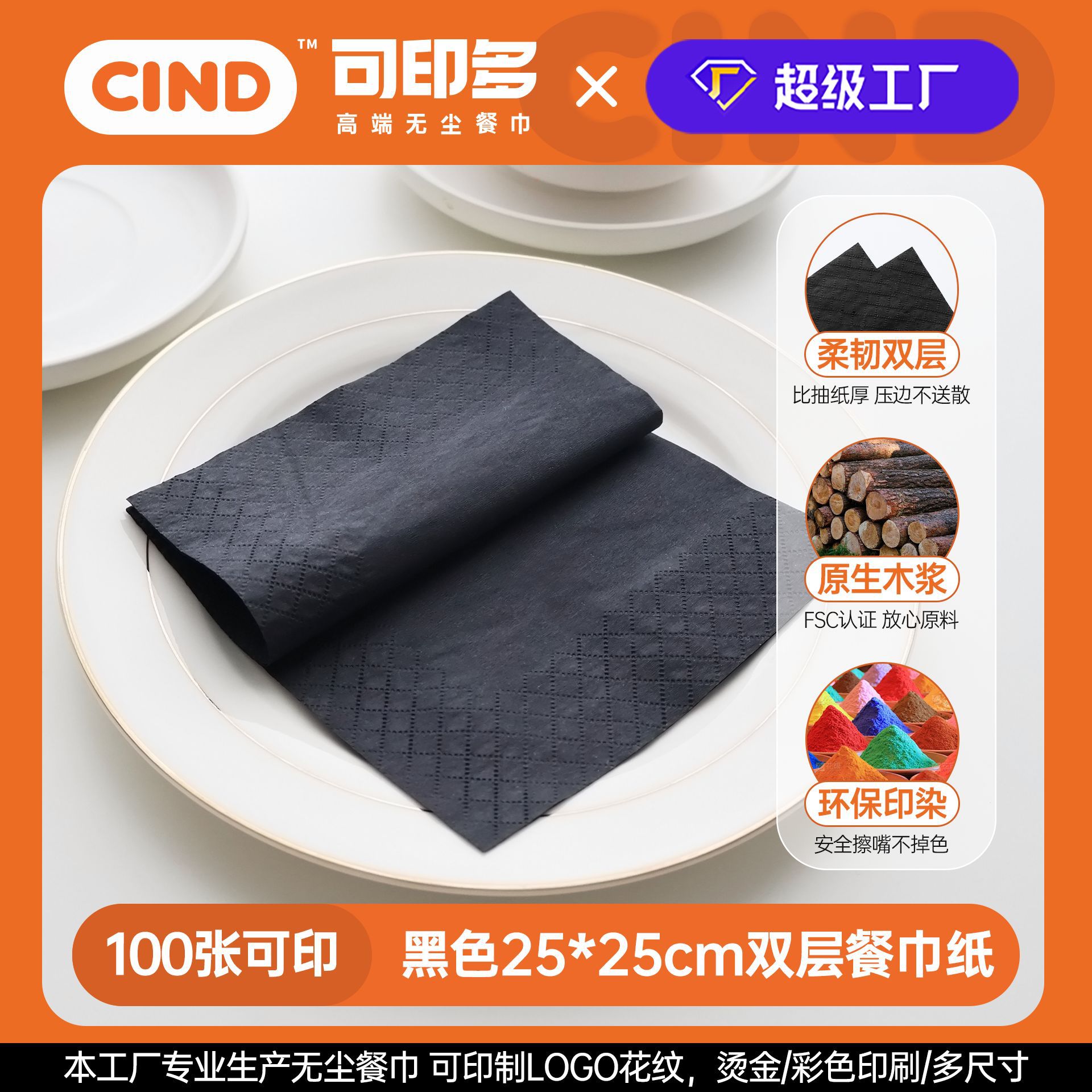 黑色高级感餐巾纸酒店西餐厅纸二层方巾纸40*40cm可定制LOGO