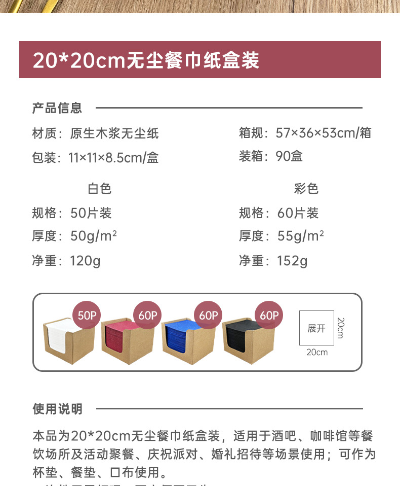工場直販、ロゴ印刷、無塵紙ナプキン、多色箱入り、使い捨て口拭きペーパー、カクテルパーティー、宴会用