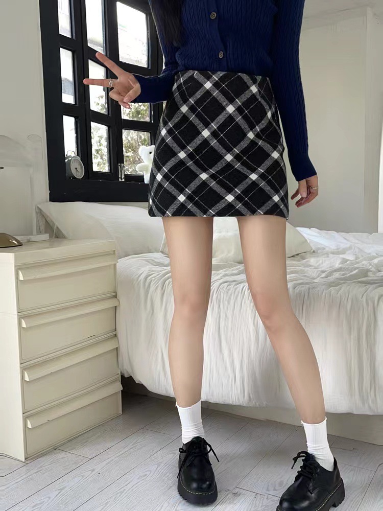 毛の格子の半身のスカートの女性の2024秋冬の厚い腰はやせています。