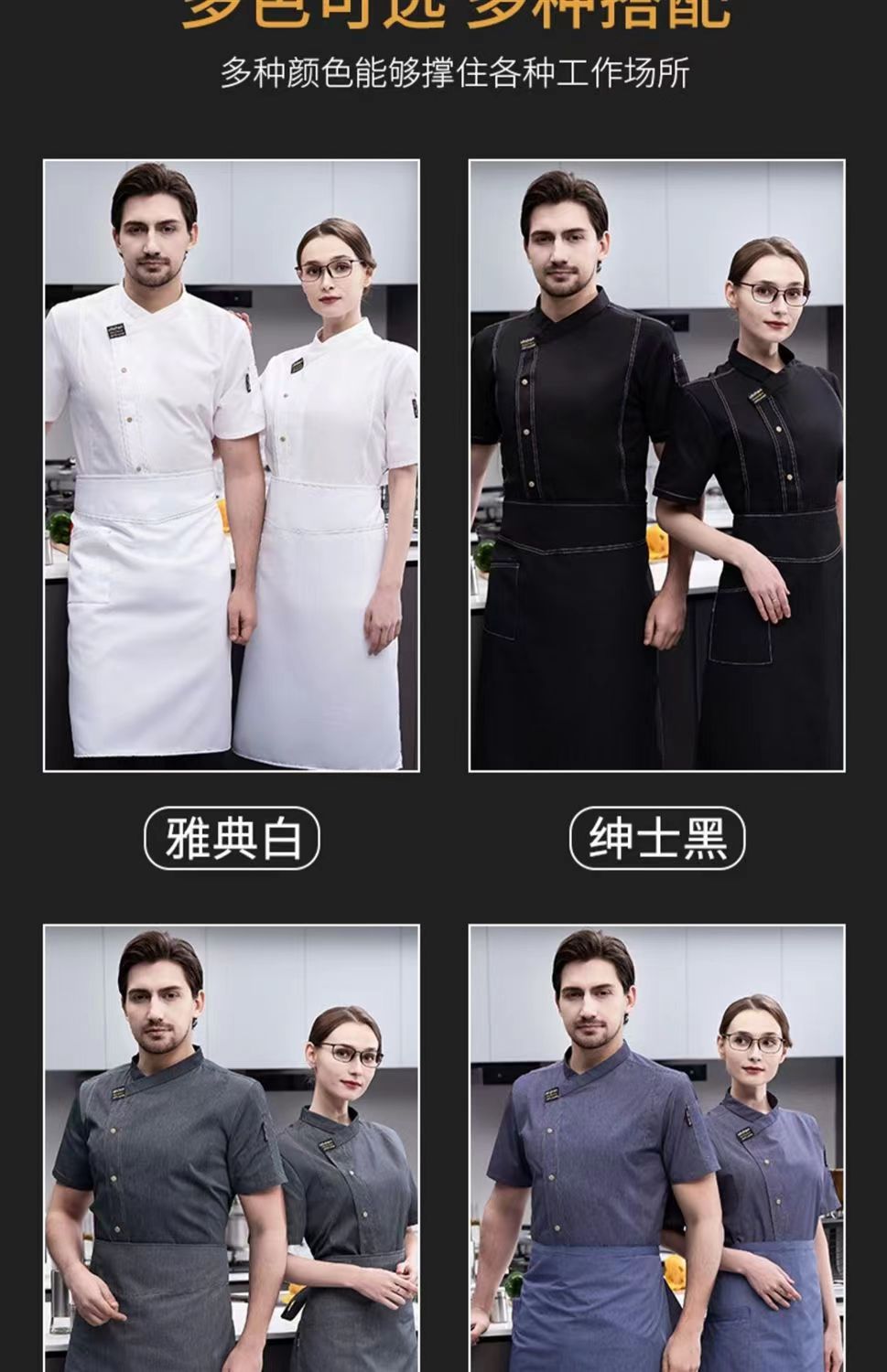 シェフ服半袖男女ホテル食堂シェフ長袖レストランケーキ店パン師作業服