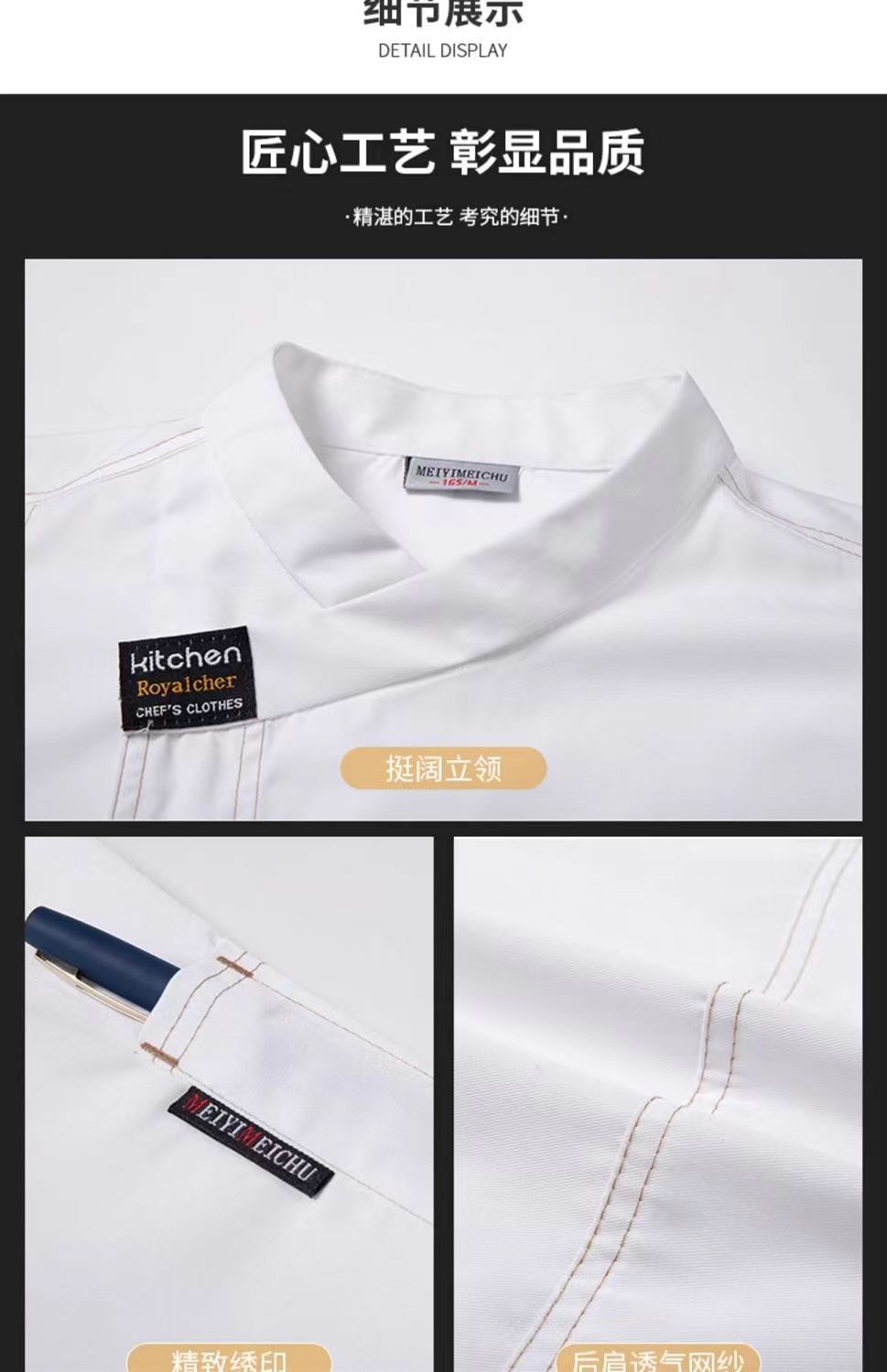 高級シェフ作業服半袖夏通気ホテルレストランレストランキッチン長袖セット卸売り