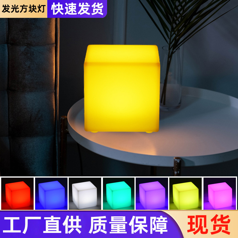 Led発光キューブブロックフロアライトins风クリエイティブベッドサイドテーブルスタンドソファ一体充电ムードライト