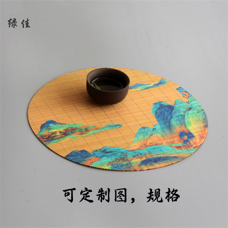 竹茶席防水手作り竹編み禅意レトロ中国風プリントテーブル旗竹簾断熱マット