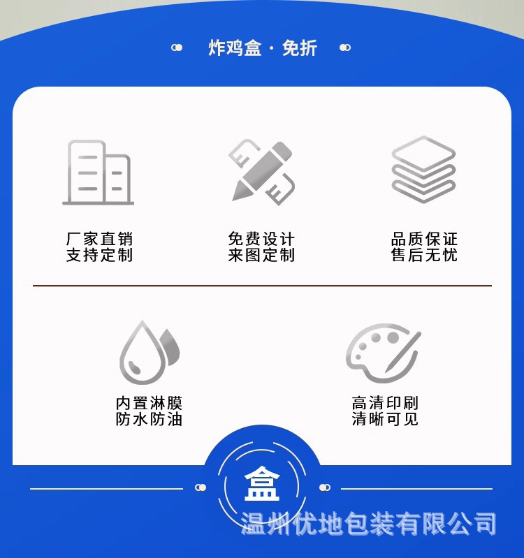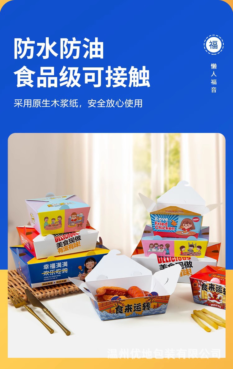フライドチキンは箱を梱包して金持ちになりました。フライドチキンは油を防ぎます。