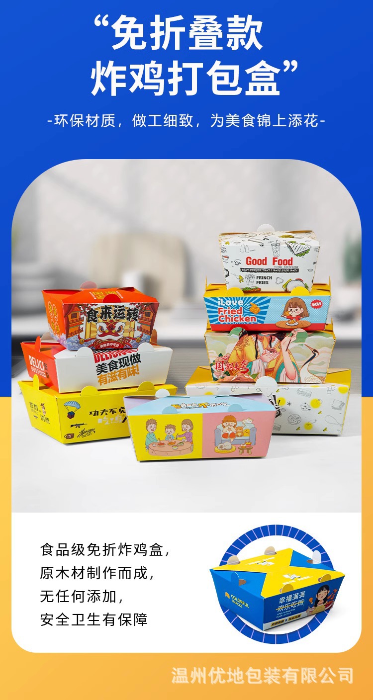 炸鸡打包盒子小吃鸡腿鸡翅商用免折纸盒打包盒韩式一次性外卖餐盒