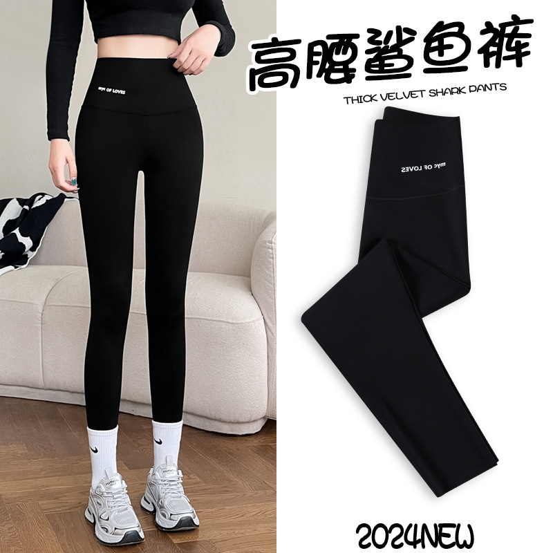 レギンスのサメのズボンの女性の秋の高腰はやせています。