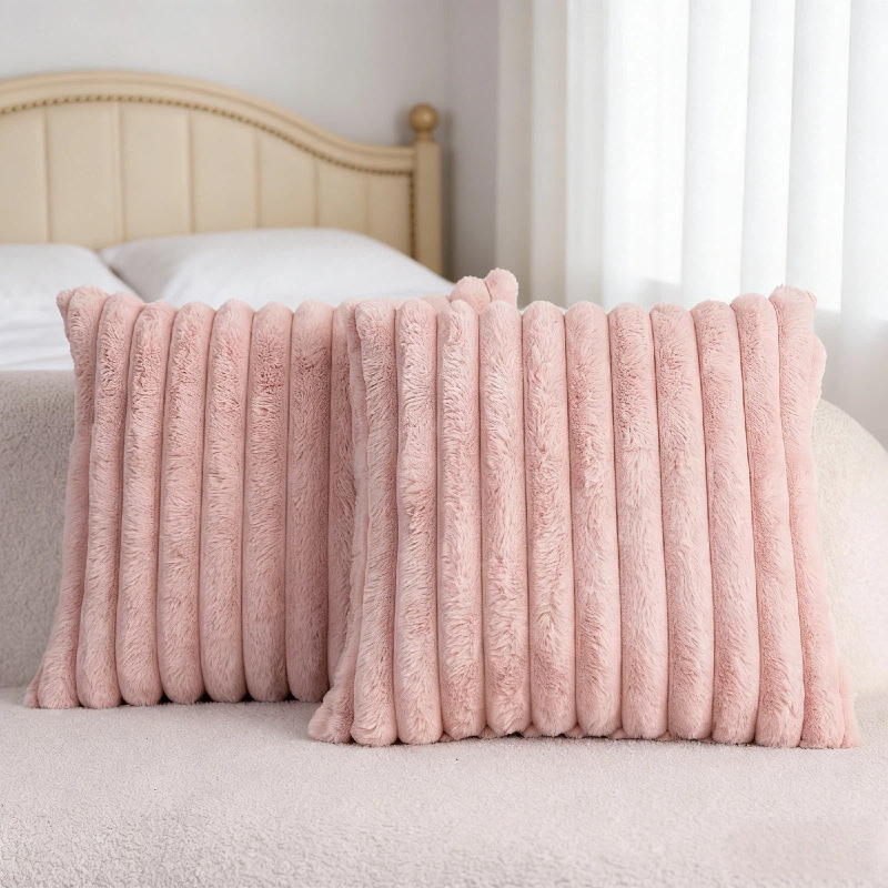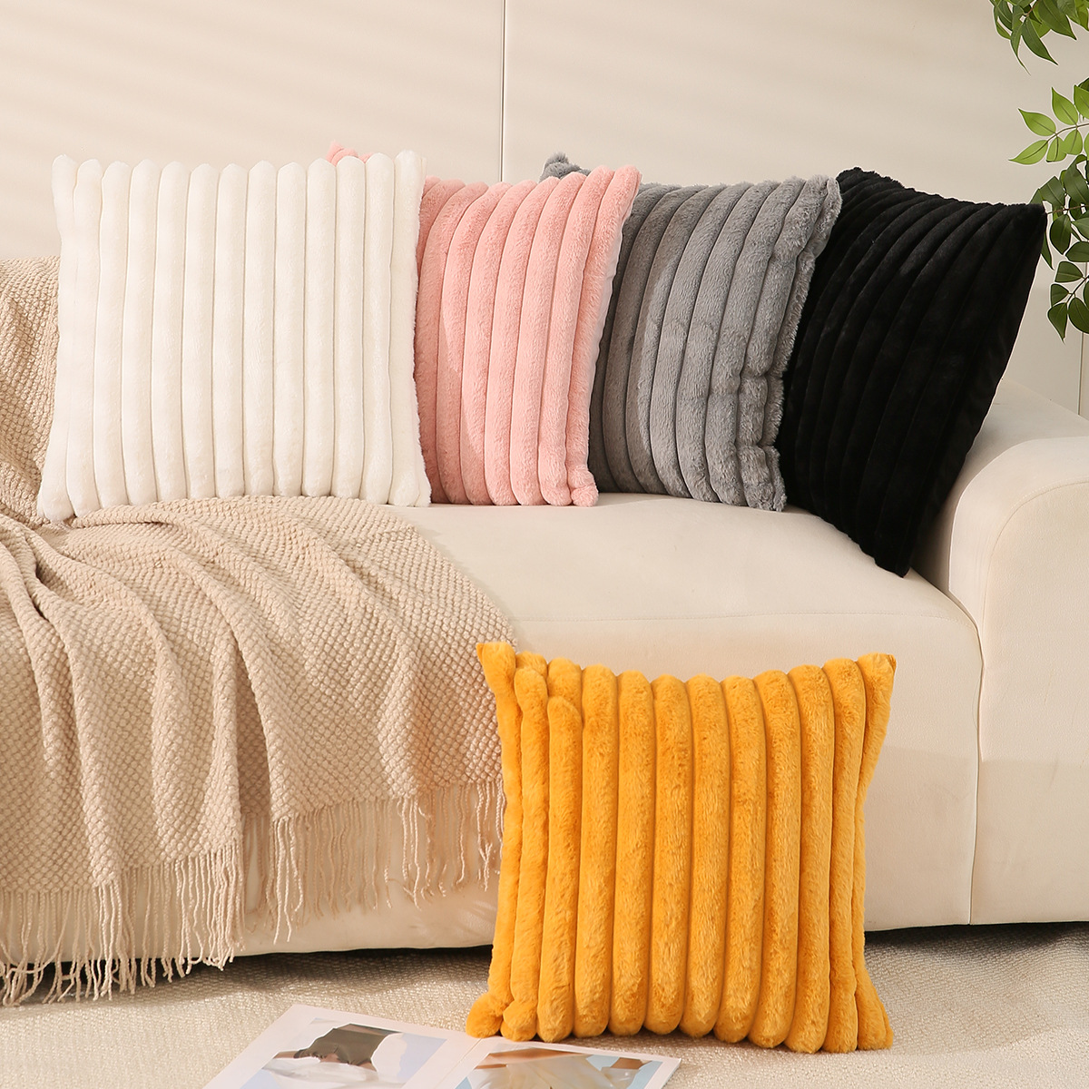 亚马逊ins北欧轻奢仿兔毛抽条抱枕客厅沙发纯色毛绒靠垫跨境抱枕