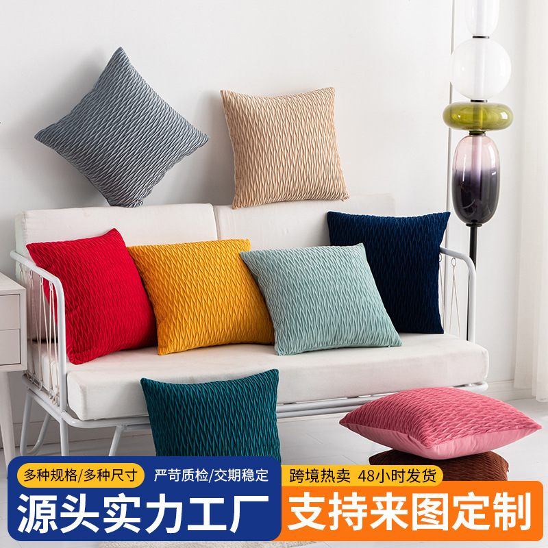 クロスボーダーソリッドカラーストライプベルベットプリーツ枕カバーソファベッドサイドオフィスぬいぐるみライト高級バッククッションウエスト枕