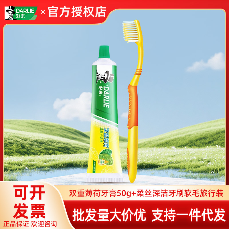 好来オリジナル黒人ダブルミント歯磨き粉50g+ソフトシルク歯ブラシ携帯用トラベルセット卸売配送