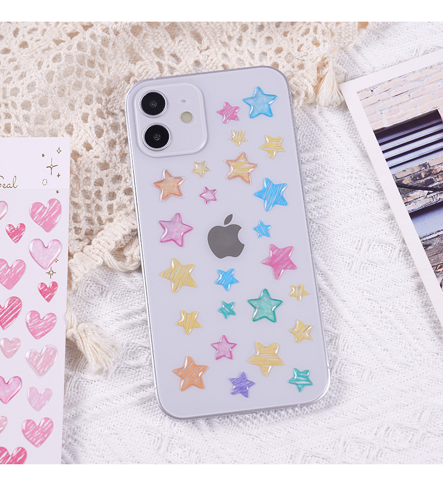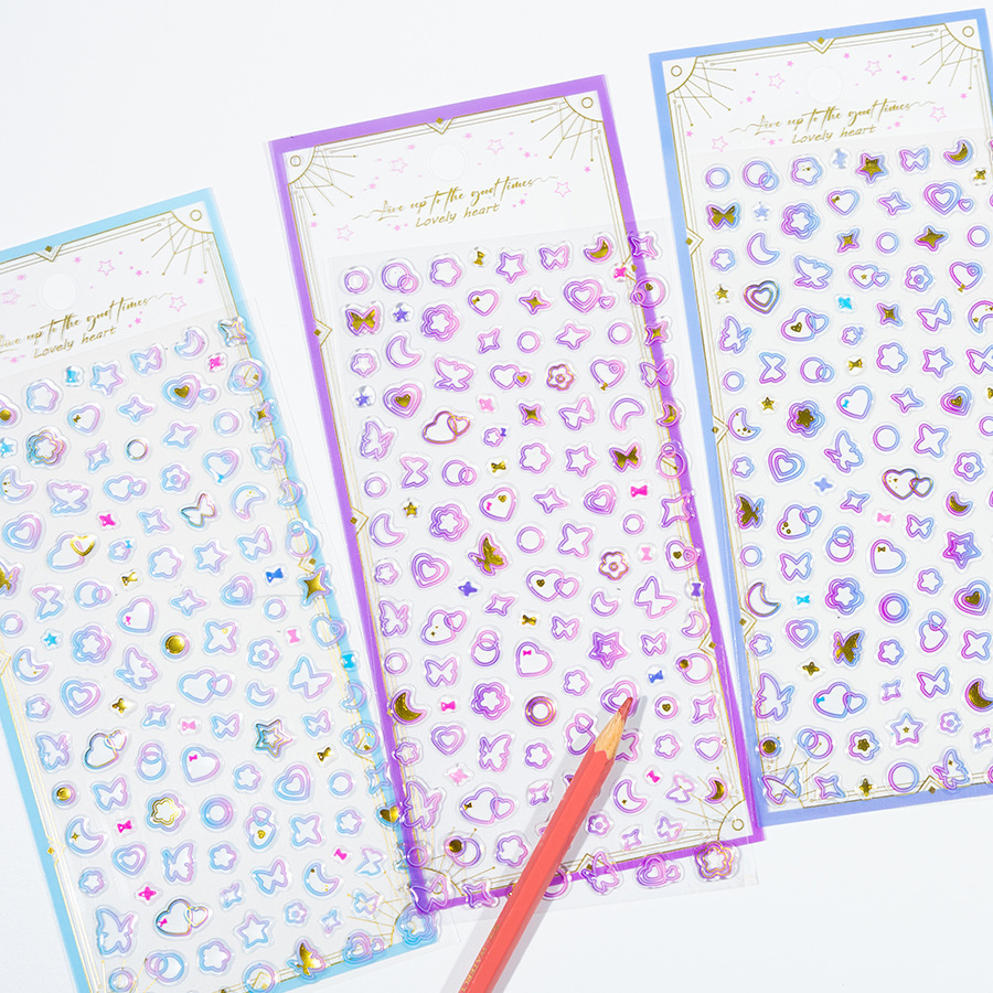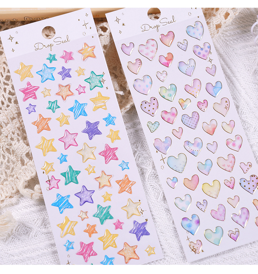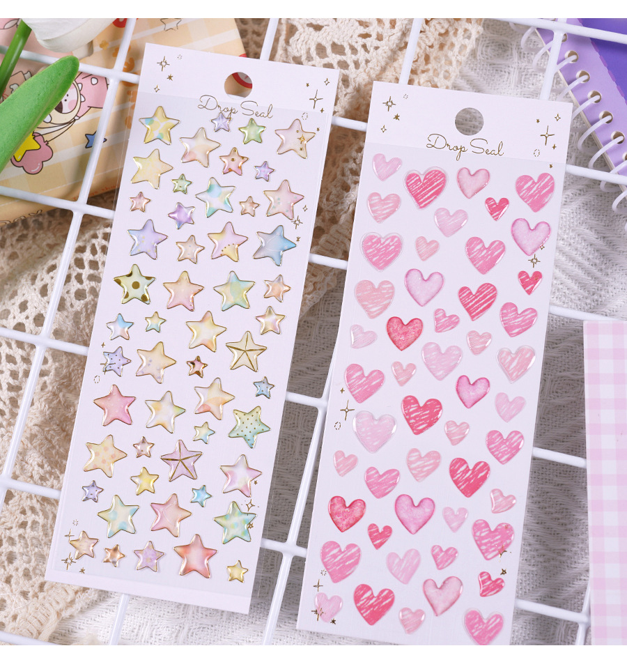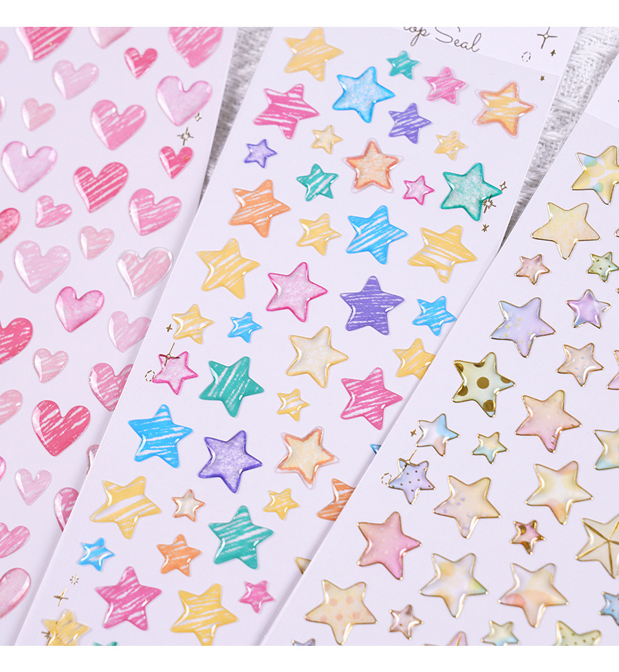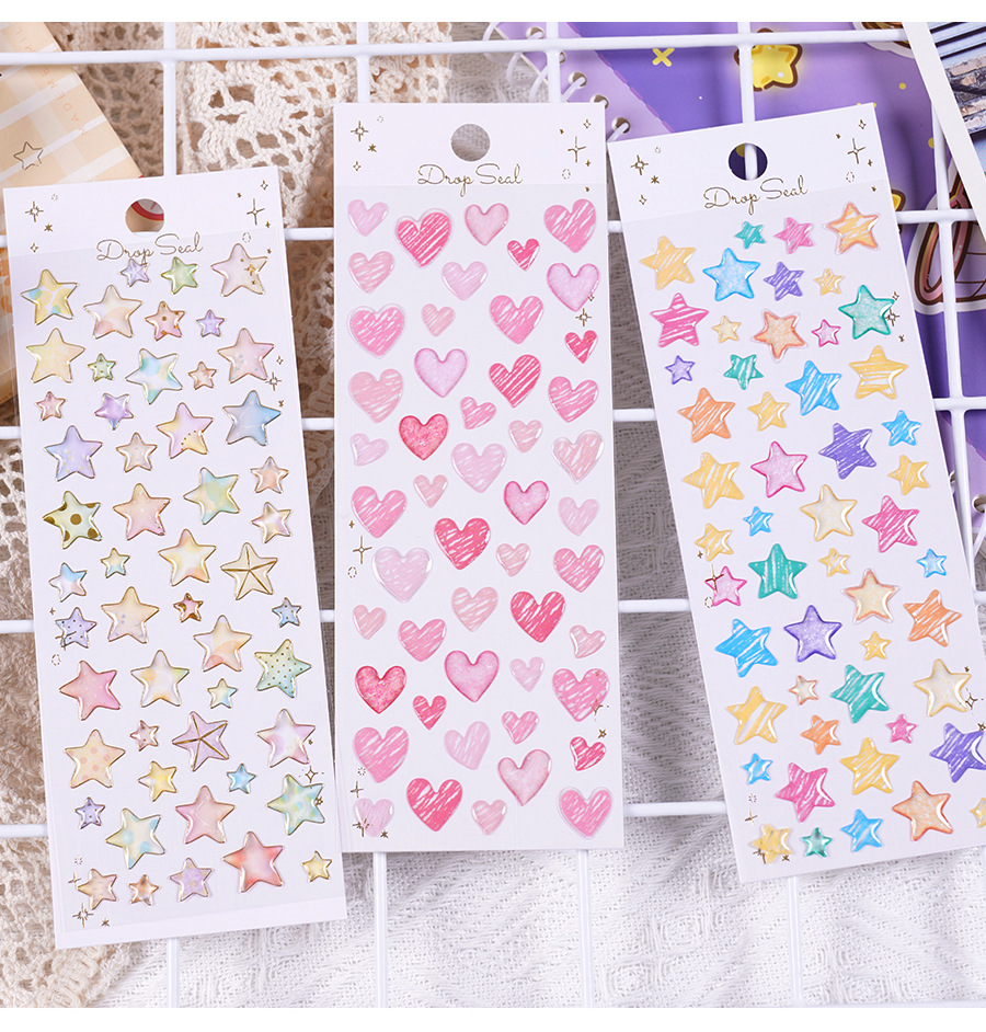 日本の手描きスタイルの五芒星愛クリスタル立体子供用ステッカー小さな新鮮な女の子の手作り装飾報酬ステッカー