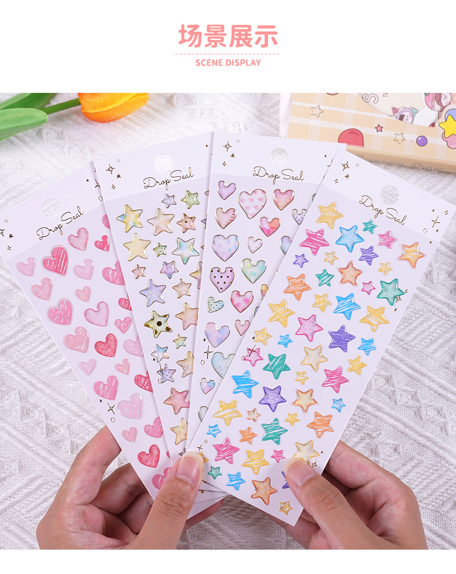 キラキラ愛水滴水晶立体シール小円小星子供女の子手作りアルバム装飾ステッカー