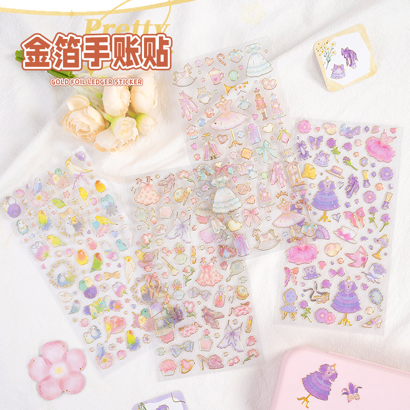日本の美しい金箔の手帳のシールの童話の王女のスカートのファッション的な金箔の子供の女子学生は絵のコップの装飾を貼ります。