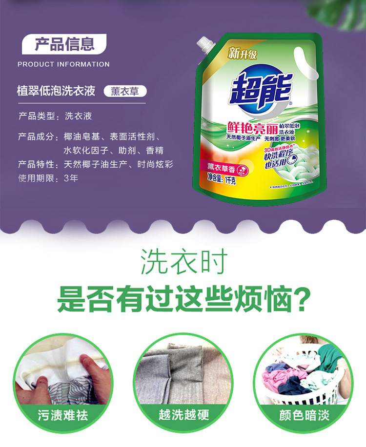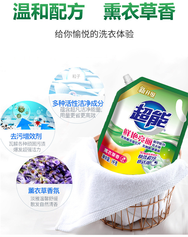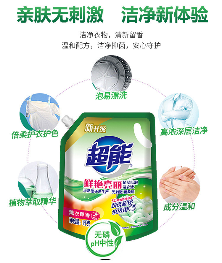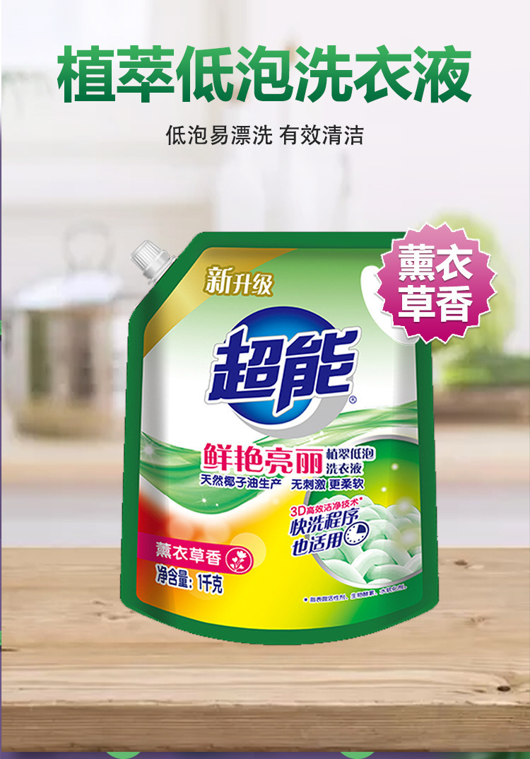 超能洗衣液1kg袋装薰衣草香味家用补充实惠装劳保福利整箱批发