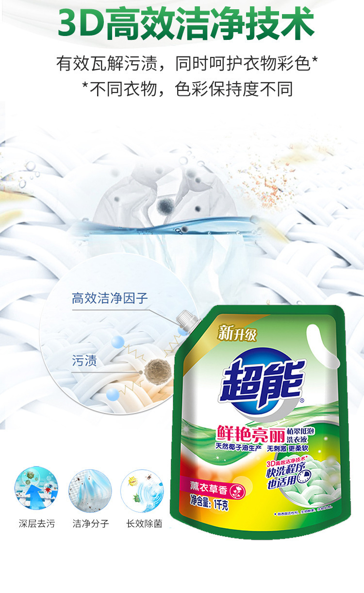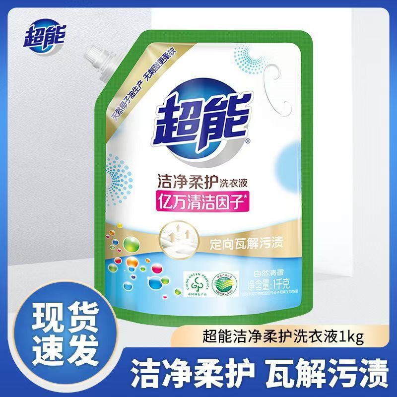 超能洗衣液1kg袋装家用快洗去渍补充装整箱实惠批发持久留香柔护