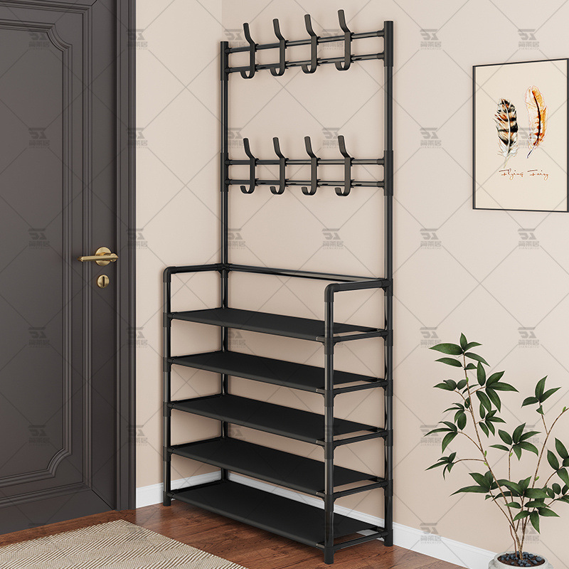 跨境鞋架门口家用一体挂衣架多功能收纳鞋柜衣帽架多层组装置物架