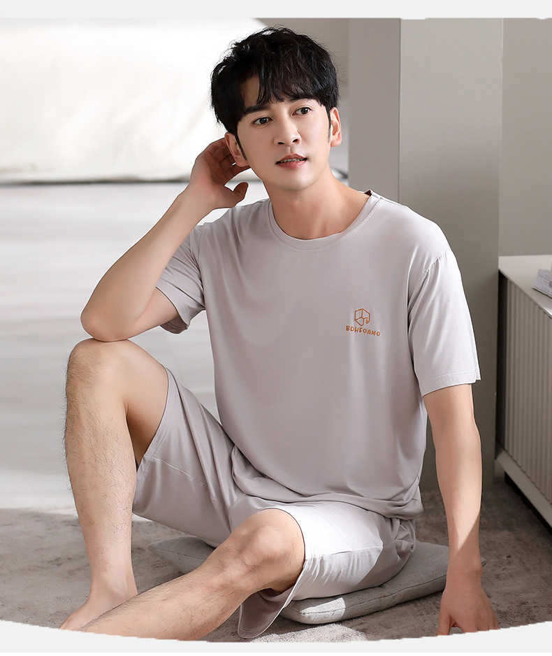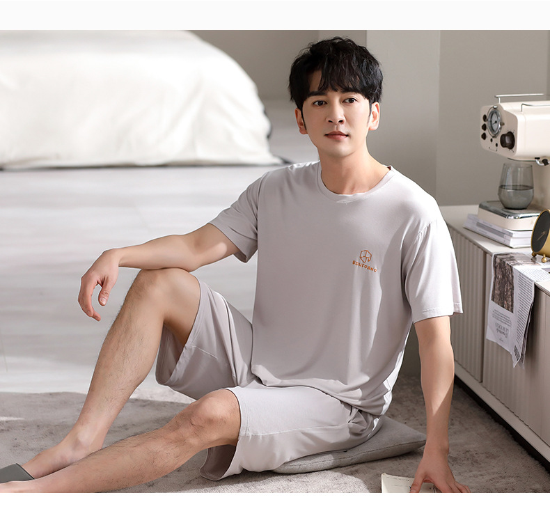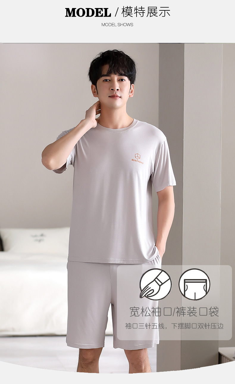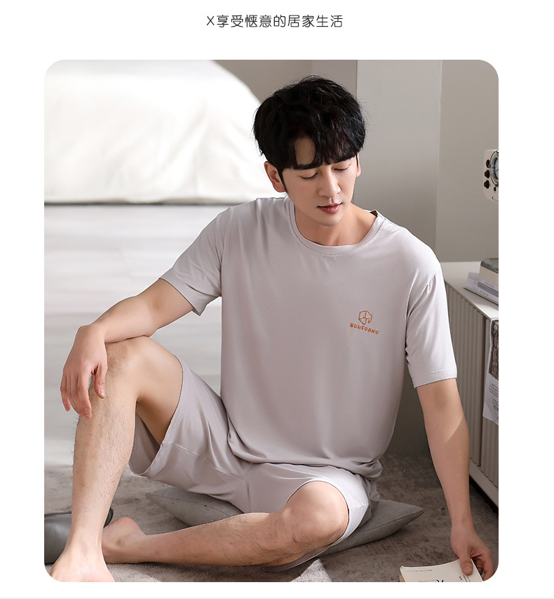 モーダル男性パジャマ男性夏半袖氷糸涼感運動は夏の薄い家庭服セットを着ることができる