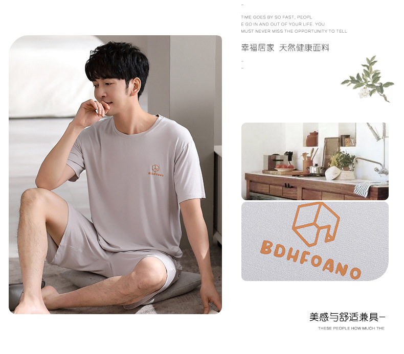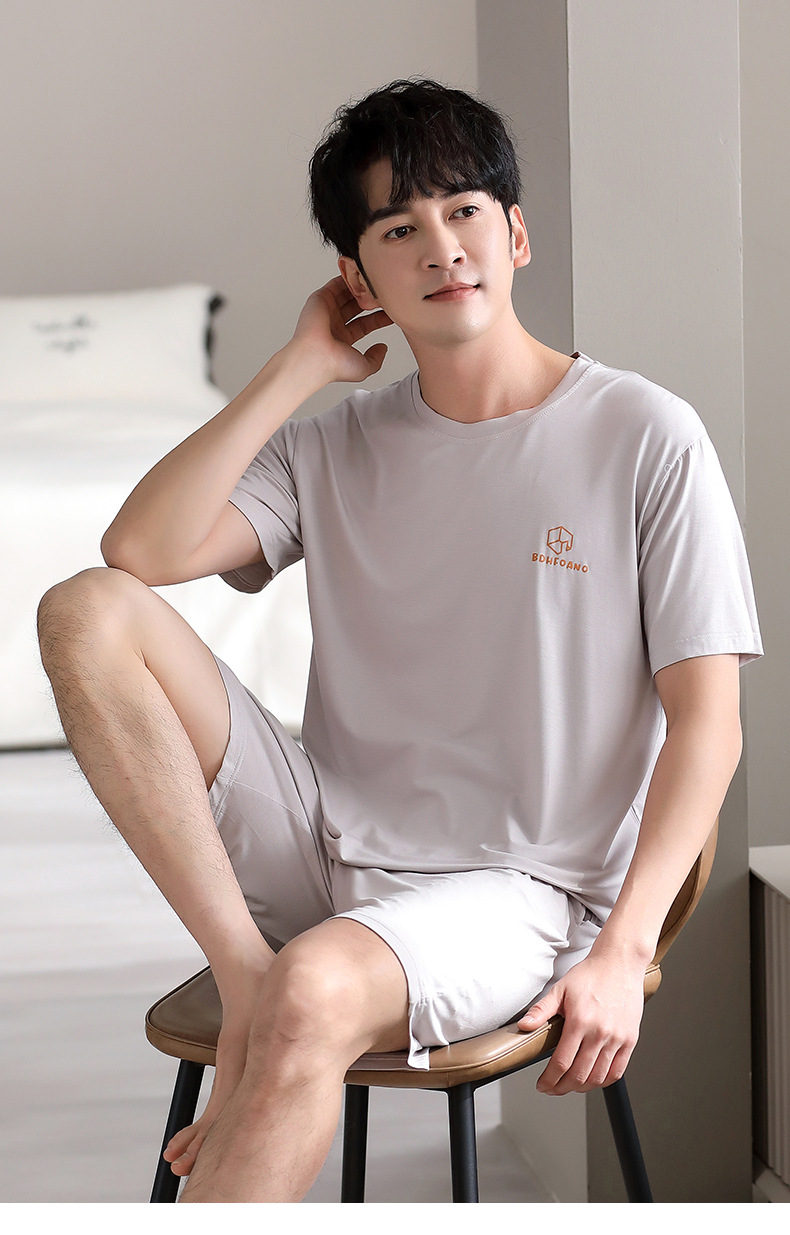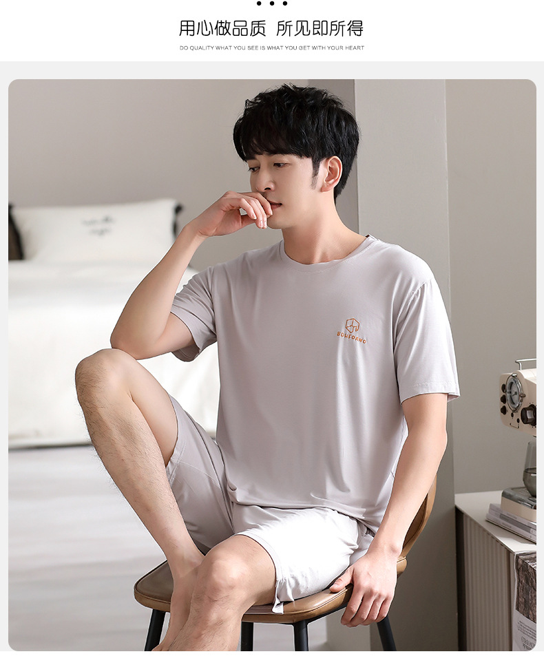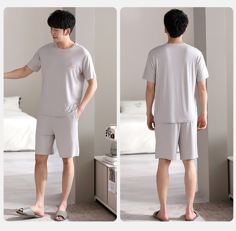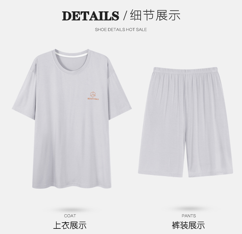 モーダル男性パジャマ男性夏半袖氷糸涼感運動は夏の薄い家庭服セットを着ることができる
