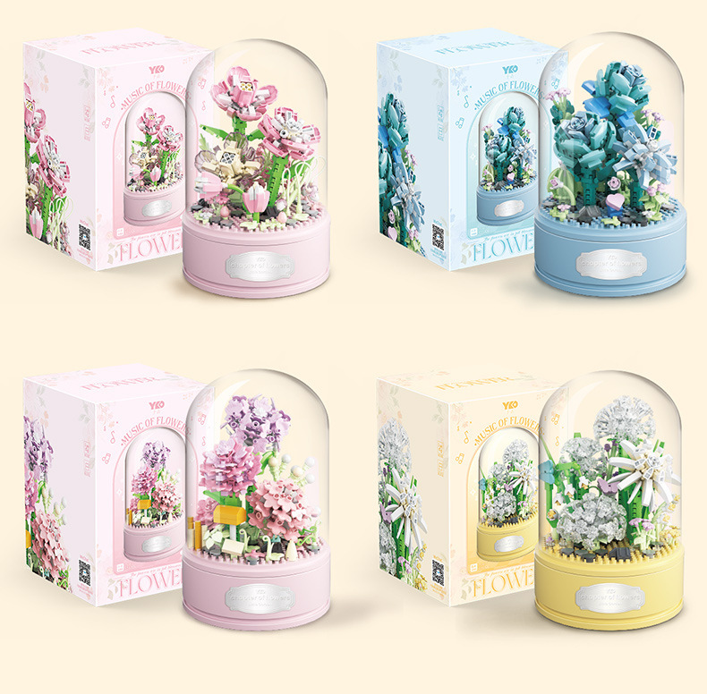 国境を越えた植物の花束、バラ、蘭、小さな粒子の積み木、組み立ておもちゃ、装飾品、ギフト、女の子のおもちゃの卸売