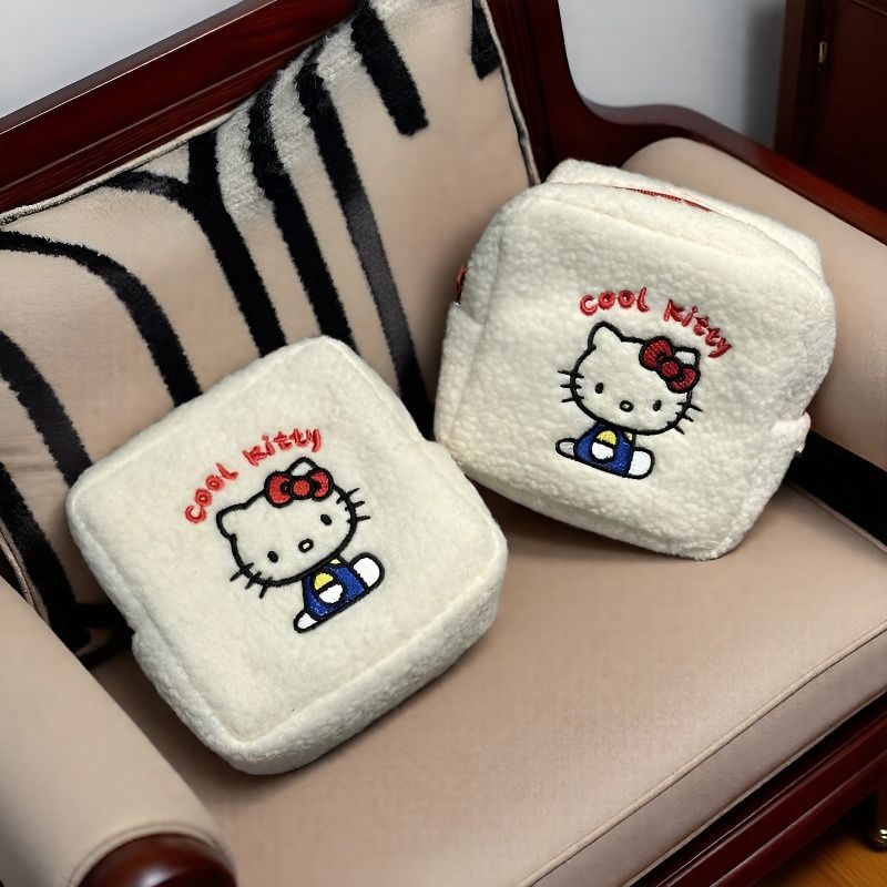 高颜值秋冬便携kitty猫羊羔毛小方包小众拍立得化妆姨妈巾收纳包