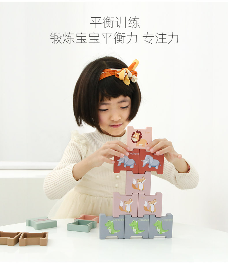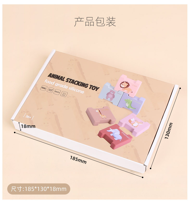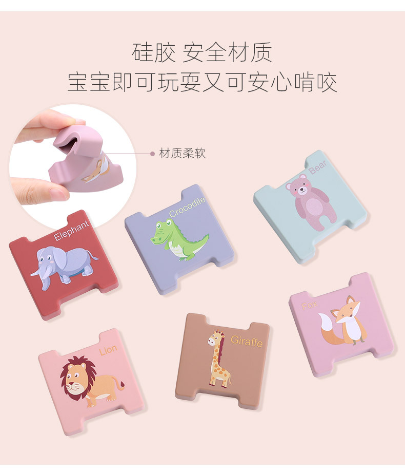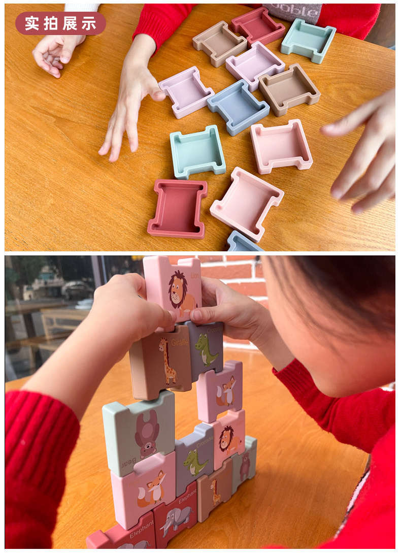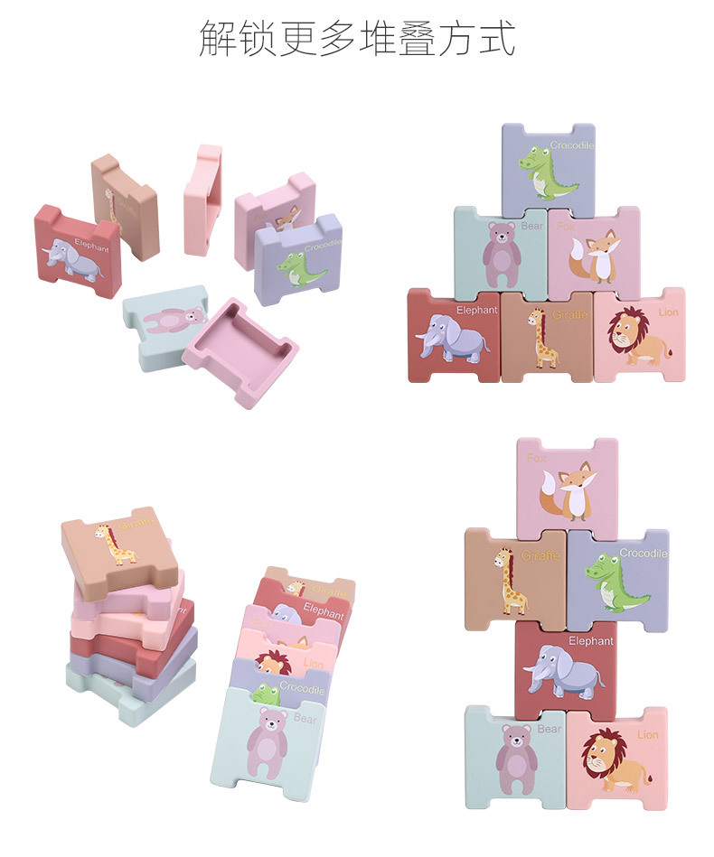 積み木動物積み重ね楽子供啓蒙益智認知玩具積み重ね訓練積み重ね高シリカゲル歯ゴムブロック