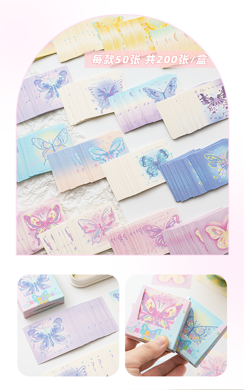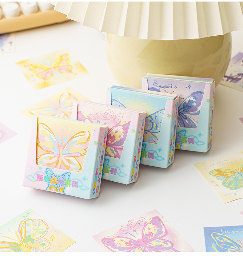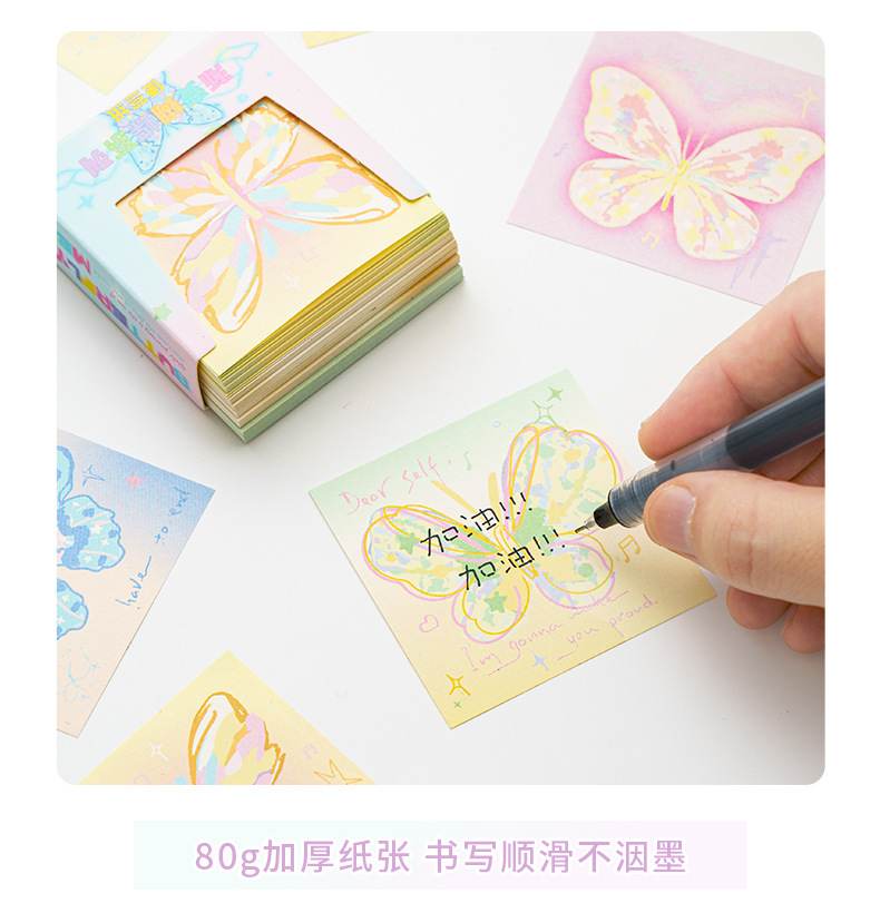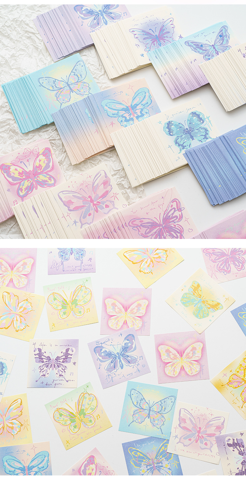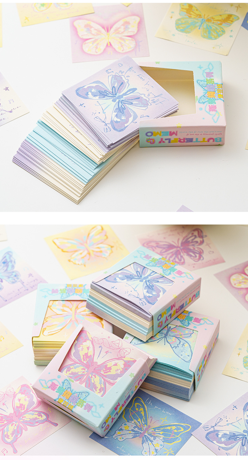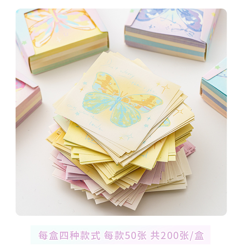 INFP手描き蝶メモピンク蝶折り紙手作り粘着性なしメモ色紙正方形積層紙プレゼント
