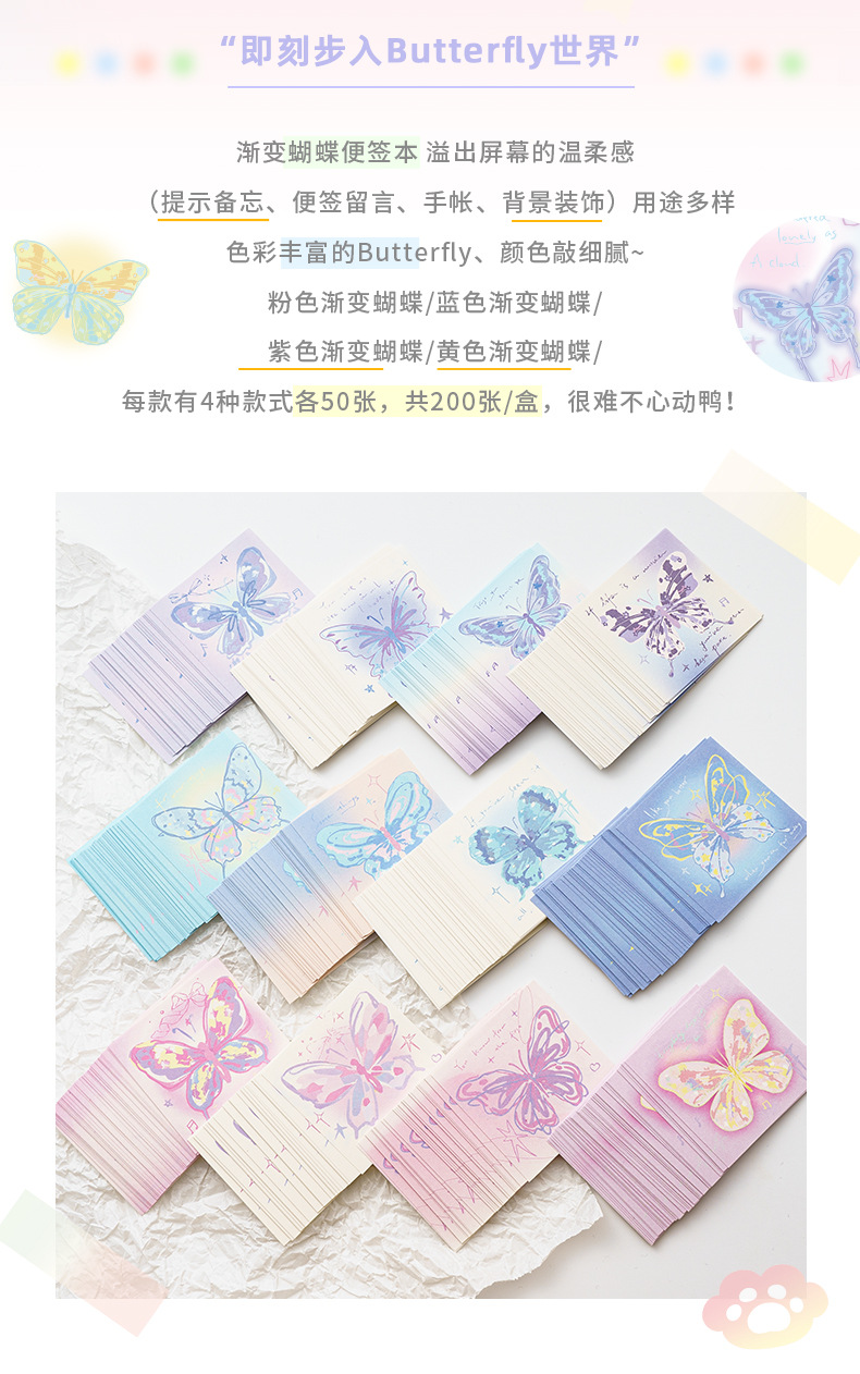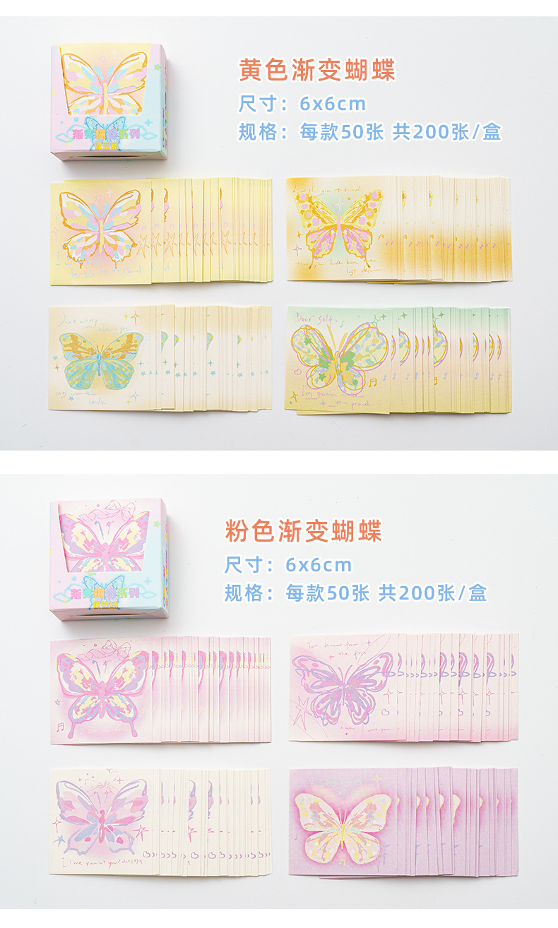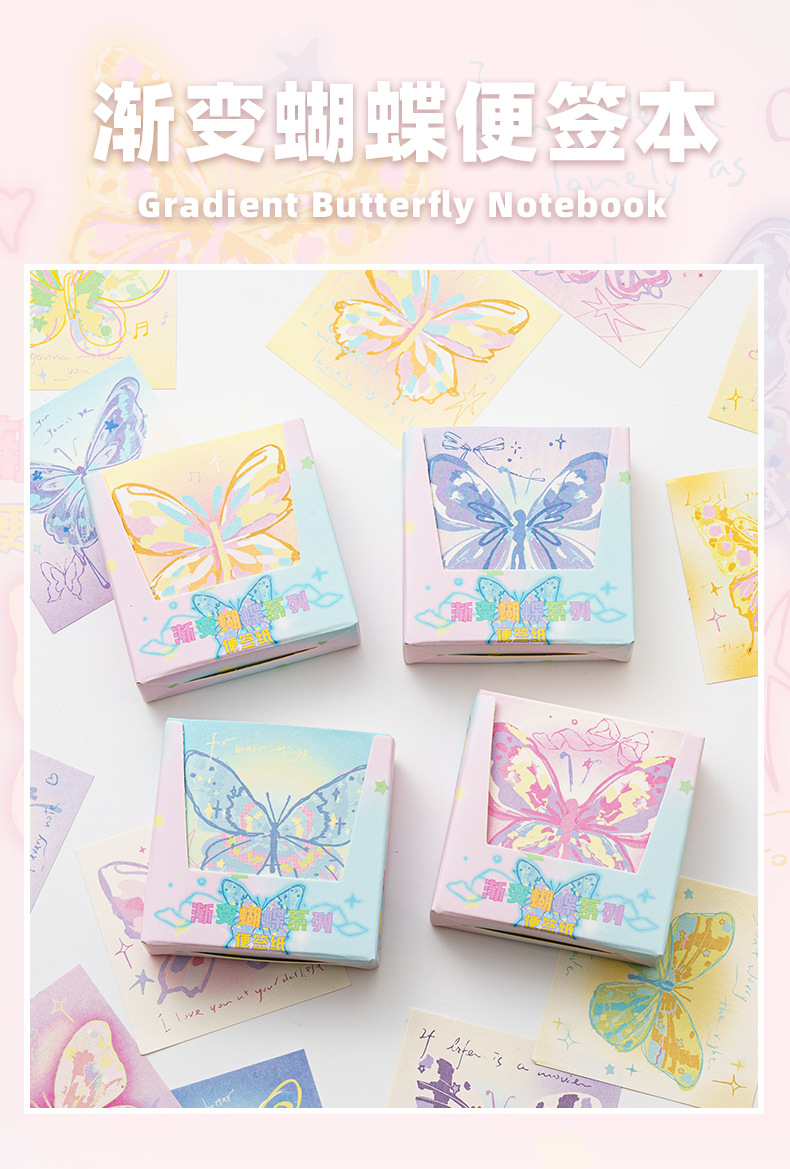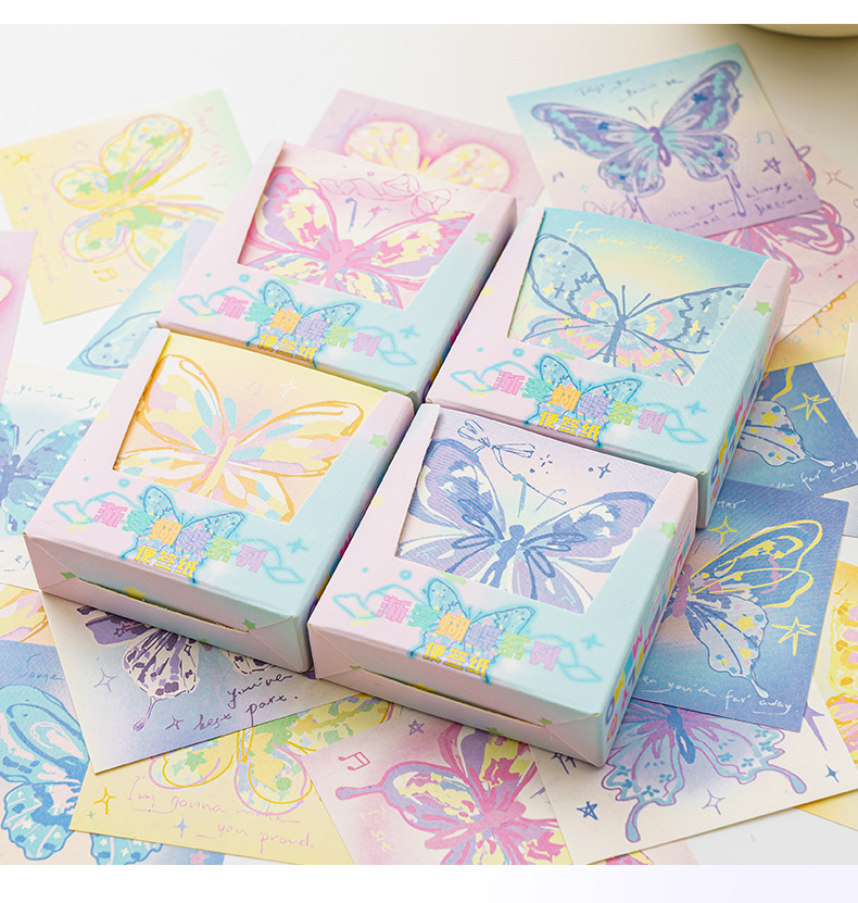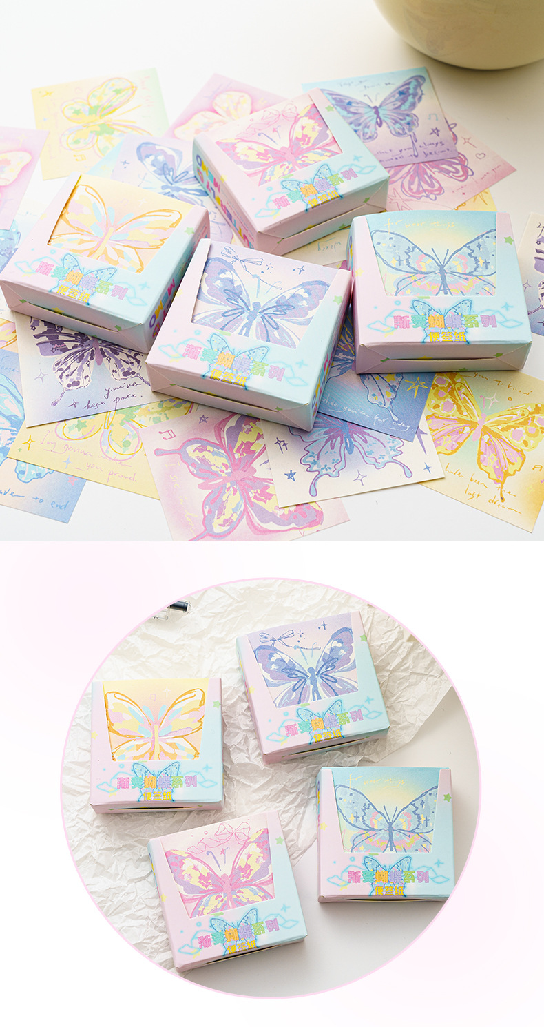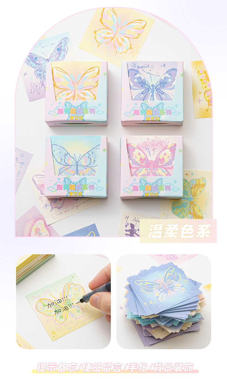 INFP手描き蝶メモピンク蝶折り紙手作り粘着性なしメモ色紙正方形積層紙プレゼント