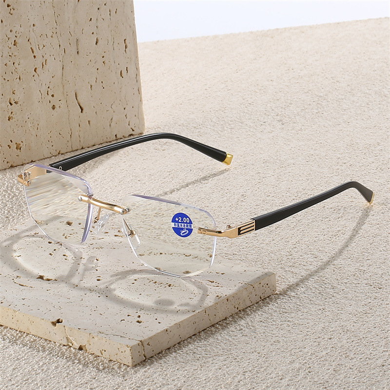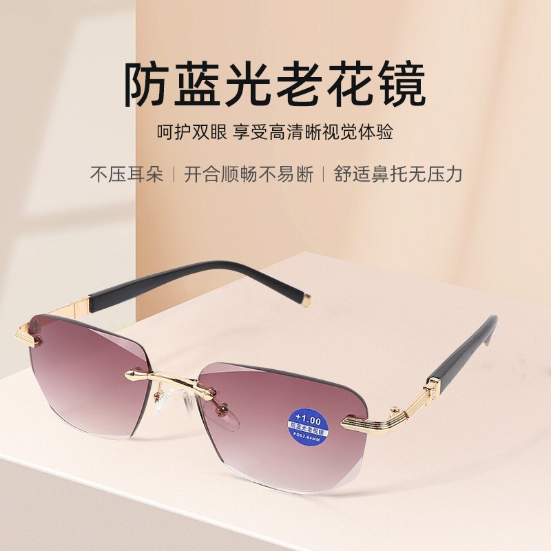 ブルーレイ防止老眼鏡2024新型フレームレスダイヤモンド縁切り老眼鏡ハイビジョン老人読書眼鏡