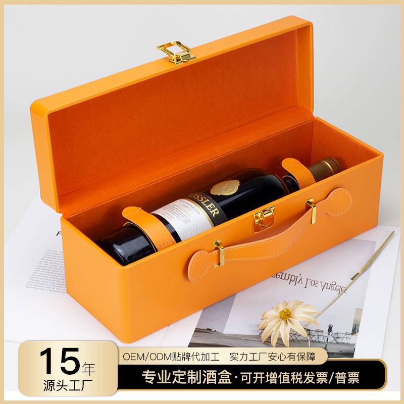 オーダーメード高級手提げ衝突色ワインギフトボックス愛馬仕橙カバーpu皮質酒類包装空箱シングルセット