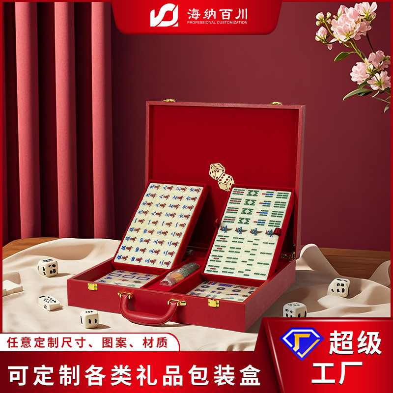 カスタマイズされた麻雀ギフトボックス空箱手提げpu皮箱赤いふた付き連体箱二重レジャー娯楽ギフトボックス