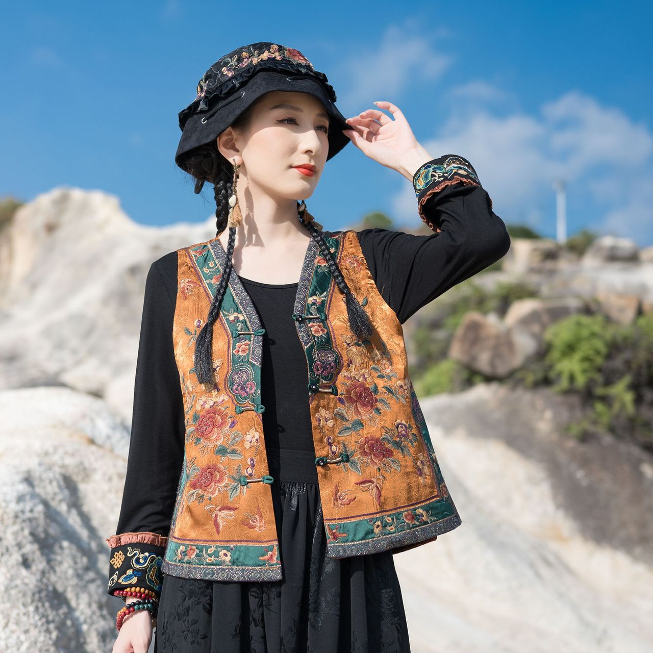 民族風女装重工は刺繍馬を挟んで女性の新しいジャカード錦織刺繍馬甲の袖なしベストコートを着ている